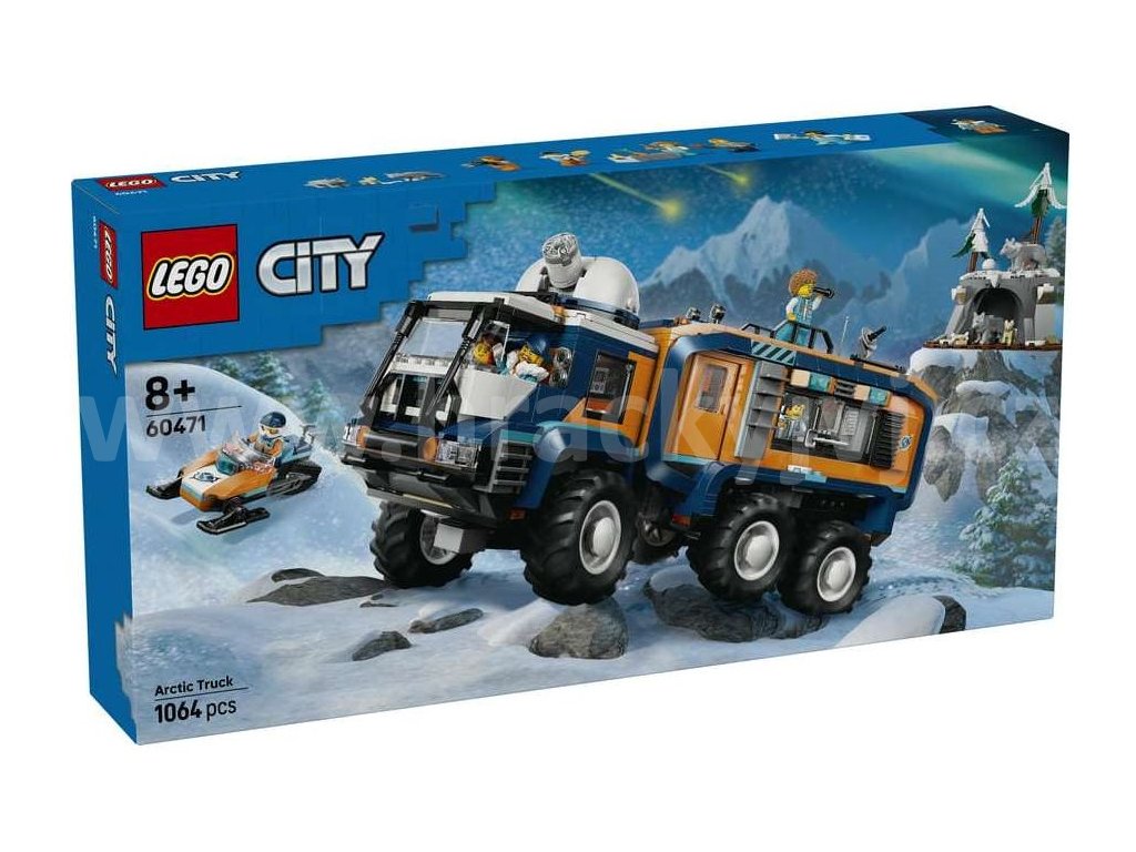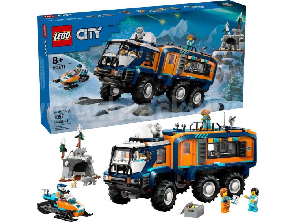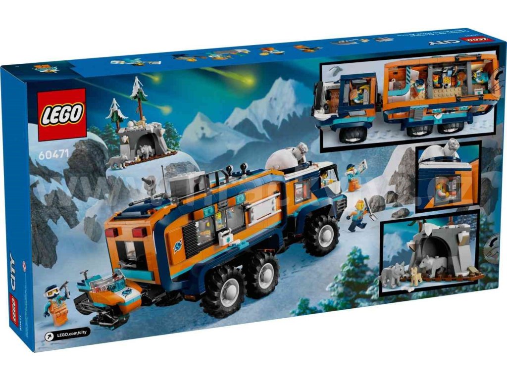- Co najdete v krabici? – Průzkumné vozidlo, sněžný skútr, arktickou jeskyni, minifigurku řidiče, fotografa, vědce, zdravotníka a mechanika a 3 figurky arktických vlků