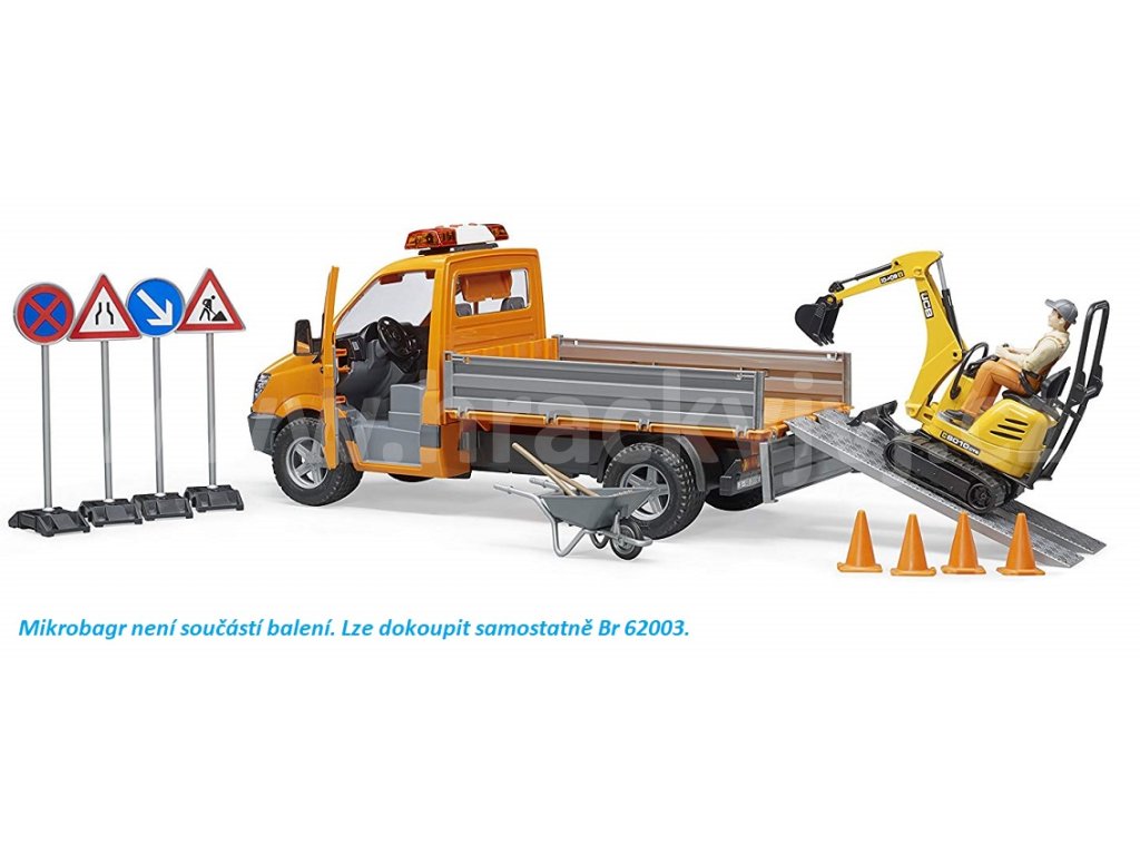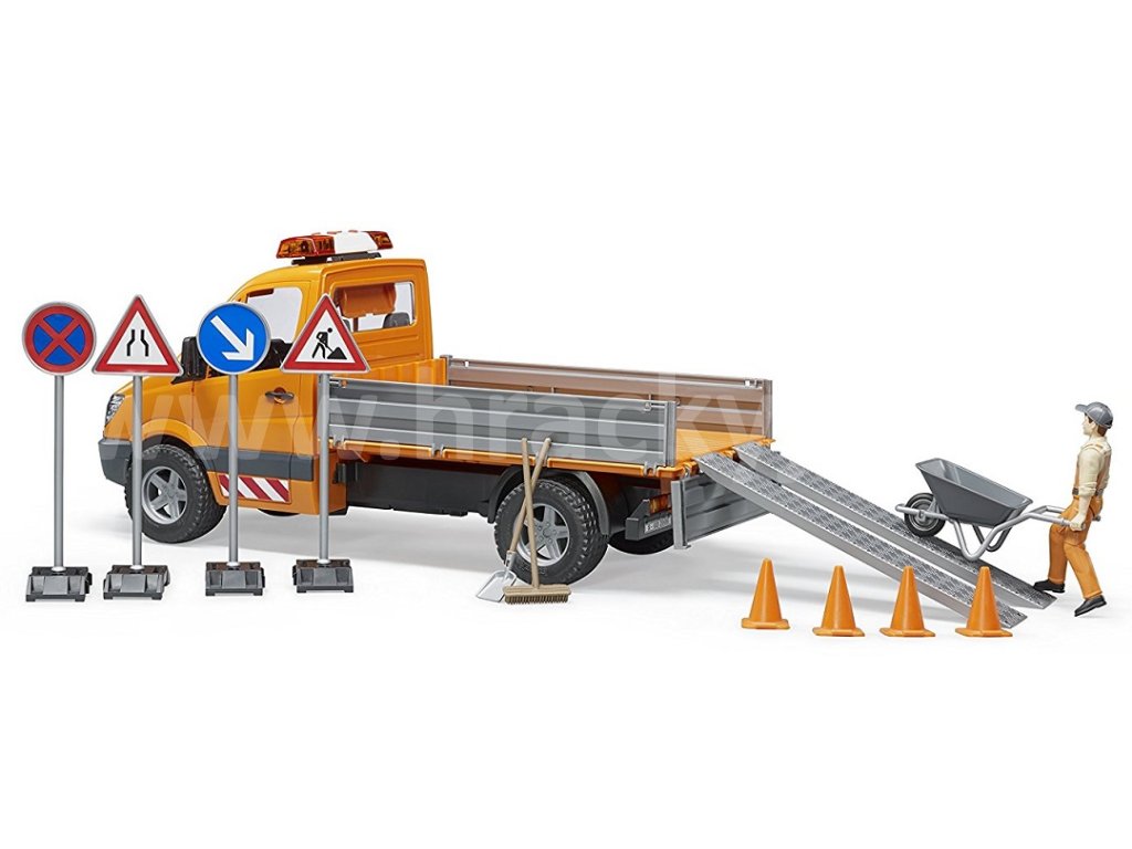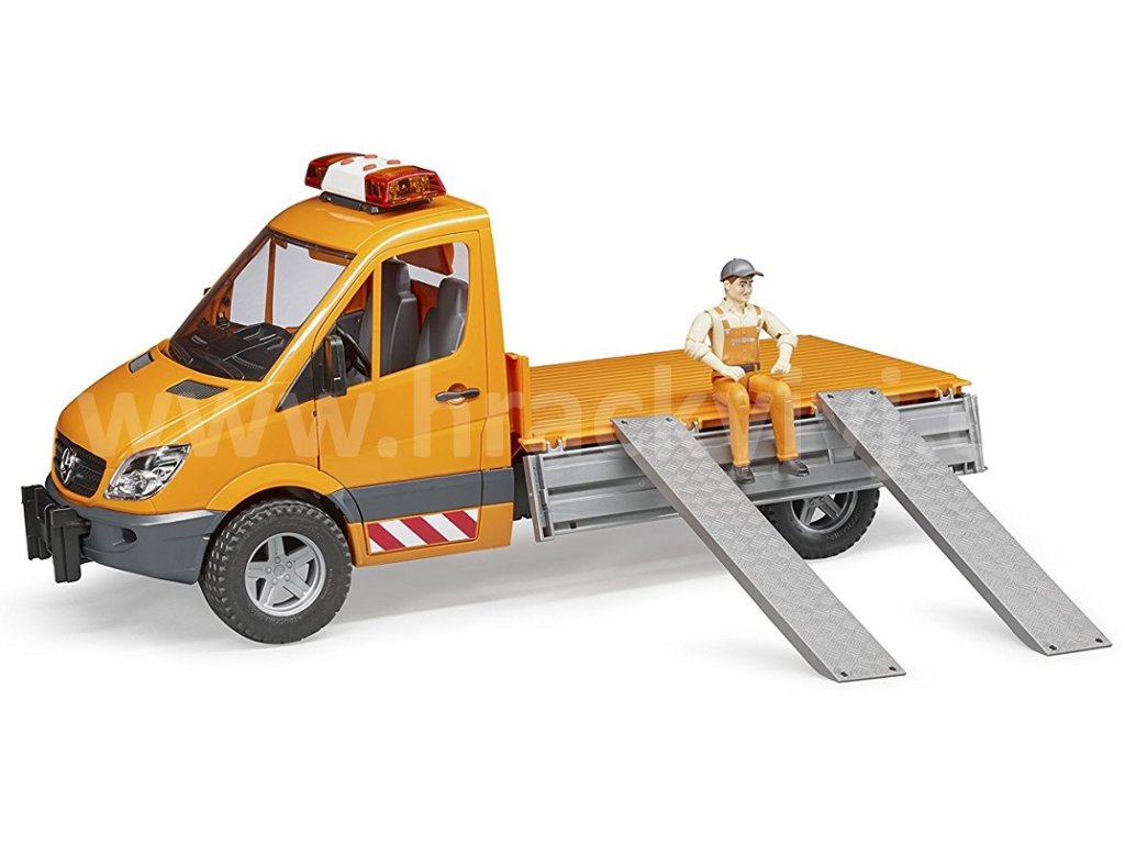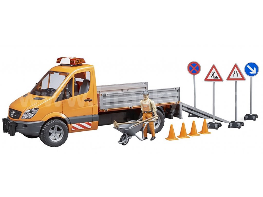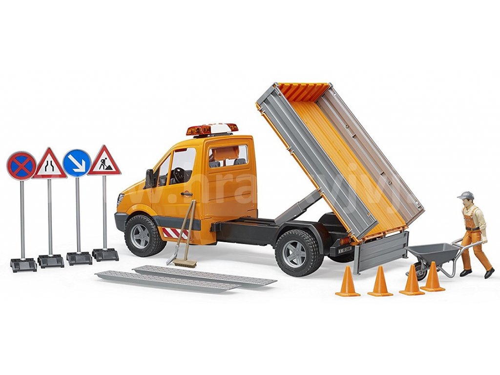 Bruder MERCEDES BENZ Sprinter komunální má moderní design a propracované detaily. Obsahuje dvě nájezdové plošinky, možnost vyklopení korby, odpojitelné bočnice (3 ks), dveře kabiny se dají otevřít a okna jsou vyrobena z vysoce kvalitního polykarbonátu. Součástí vozu je figurka komunálního pracovníka, který je pro práci vybaven kolečkem, lopatou a koštětem. Sada navíc obsahuje dopravní značky a kužely. MB Sprinter je vybaven světelným a zvukovým majákem.