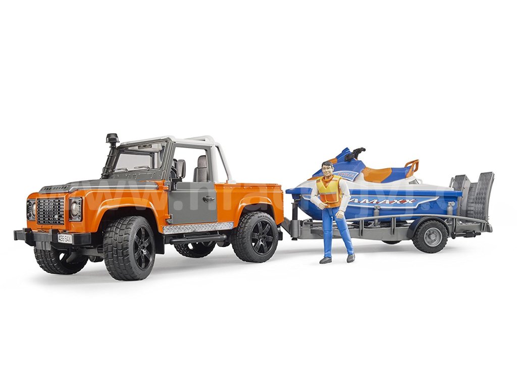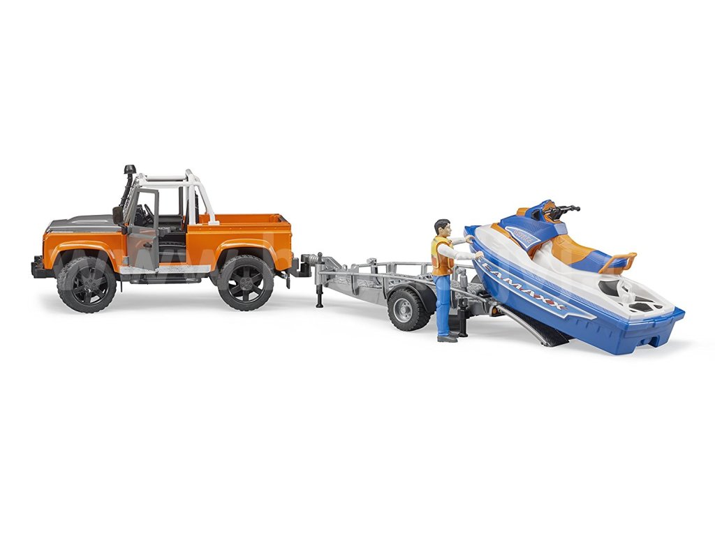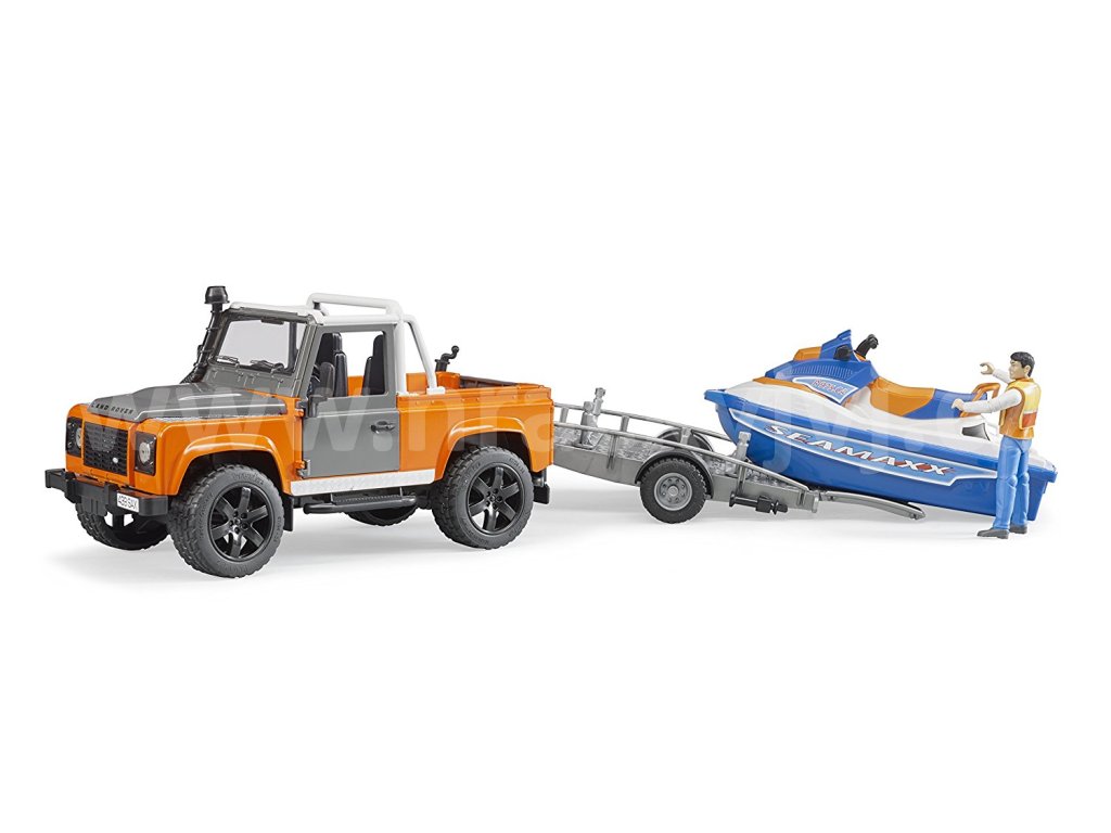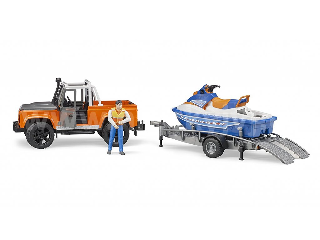 BRUDER 2599 Land Rover s přívěsem, vodním skútrem a figurkou