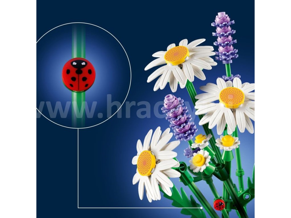 - PŘÍRODNÍ DETAILY – Autentické Kopretiny LEGO® jsou plné detailů a když se podíváte pozorně, najdete na jednom ze stonků levandule berušku