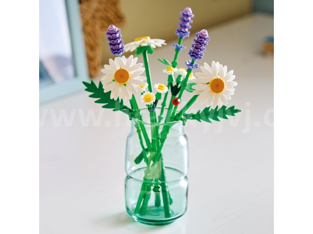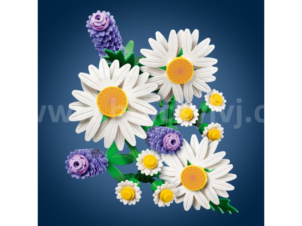 - KYTICE LEGO® – Začínající květináři si užijí spoustu zábavy při stavění 3 velkých kopretin, 2 stonků s malými kopretinami, 3 uklidňujících levandulí a zářivě zelených stonků
