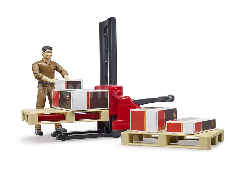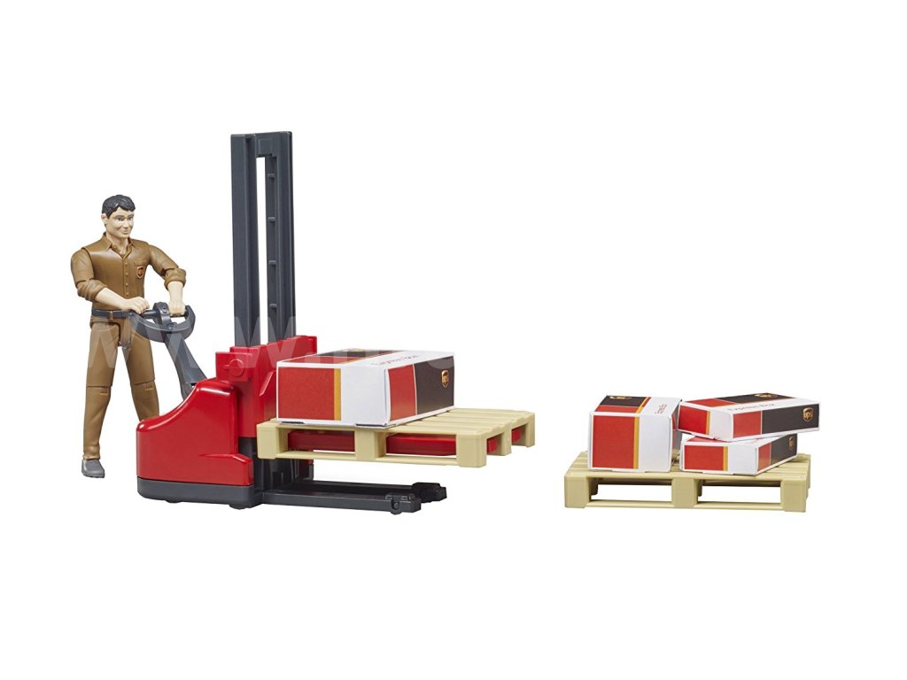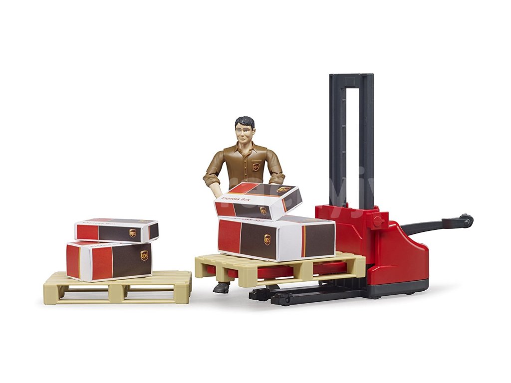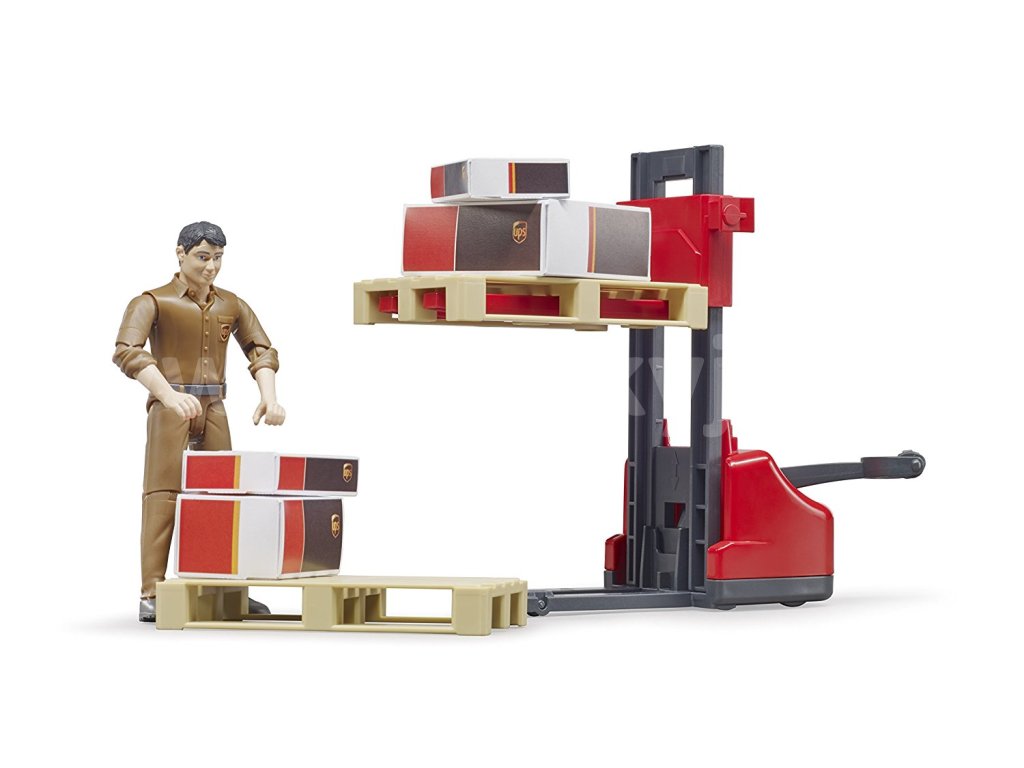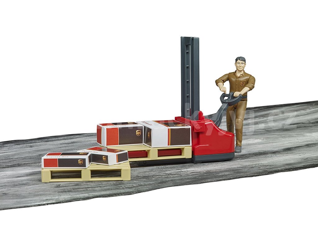 Bruder 62210 Logistický set s figurkou - Je perfektně vybavený pracovník, který vám pomůže naložit či přemístit balíky. Bworld figurka má pohyblivé kloubové končetiny, pohyblivou hlavu a ruce uzpůsobené k uchycení předmětů. Postava působí velmi realistickým dojmem a její velikost je cca 11 cm. Set obsahuje vysokozdvižný vozík, figurku skladníka, 2 europalety a balíky různých velikostí.