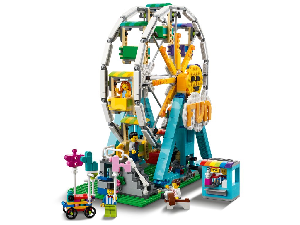 • Sada Ruské kolo od LEGO® Creator 3 v 1 s pouťovou tematikou nakopne dětskou kreativitu díky hned 3 modelům v 1 stavebnici – ruské kolo, autodrom a houpací loď.