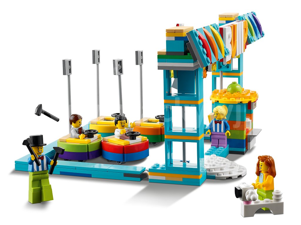 • Tato LEGO® stavebnice obsahuje 5 minifigurek, se kterými děti prožijí spoustu zábavných zážitků na pouti. V sadě najdou maminku, tatínka, dítě a 2 pracovníky zábavního parku.
