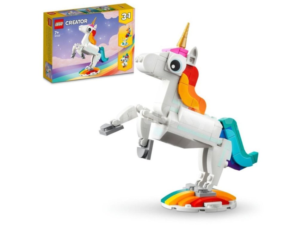 - 3 kouzelní tvorové v 1 stavebnici – Se stavebnicí Kouzelný jednorožec od LEGO® Creator 3 v 1 (31140) mohou malí stavitelé stavět a přestavovat 3 různé barevné modely