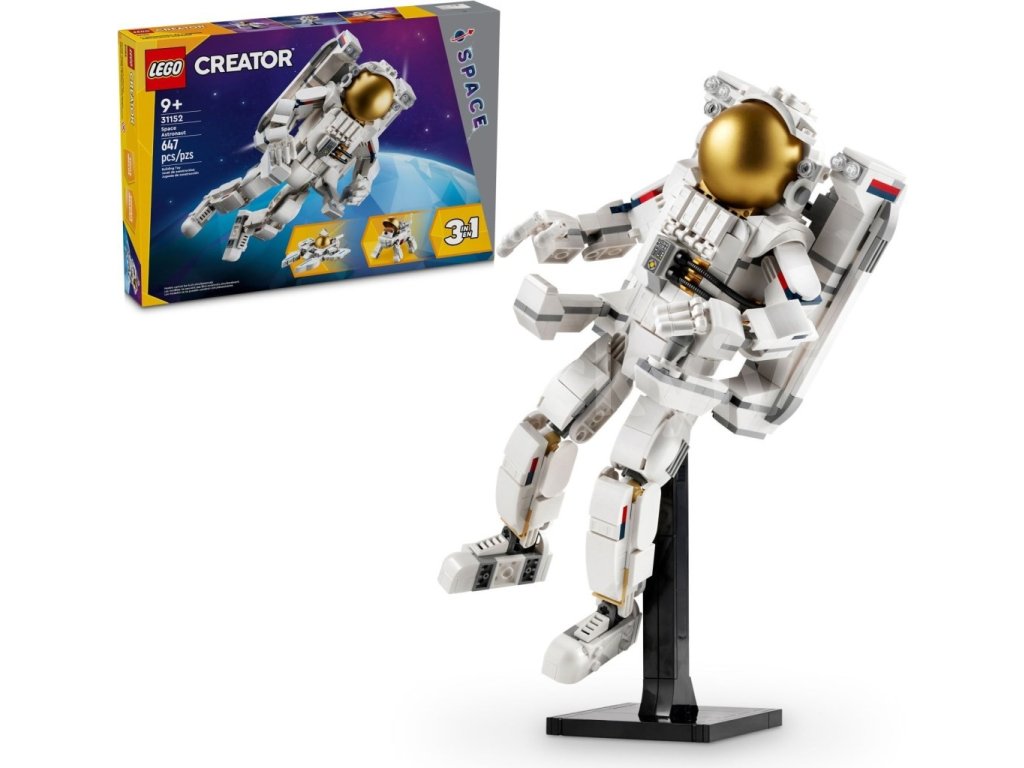 - 3 vesmírné hračky LEGO® v 1 krabici – Děti od 9 let, které milují vesmír, si se stavebnicí LEGO Creator 3 v 1 Astronaut postaví a přestaví 3 sady modelů ze stejných kostek