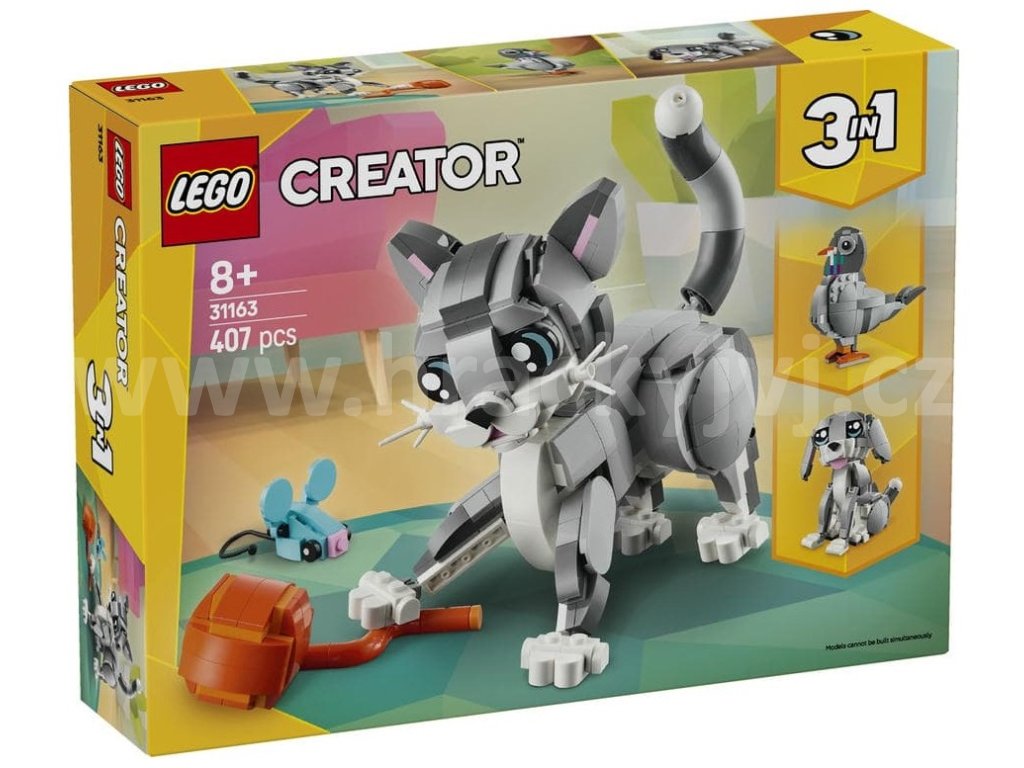 • 3 přestavitelné stavebnice domácích mazlíčků pro děti v 1 krabici – Se stavebnicí LEGO® Creator 3 v 1 Hravá kočka si holky a kluci od 8 let postaví a přestaví 3 různé figurky zvířat ze stejných kostek