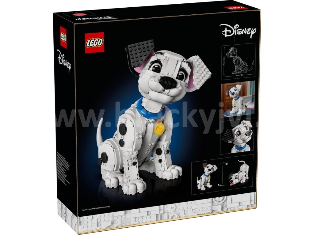 - Rozměry postavy – Tato stavebnice LEGO® ǀ Disney pro dospělé se skládá z 1722 dílků a obsahuje postavu štěněte dalmatina, které měří přes 22 cm na výšku, když je nakloněné dopředu