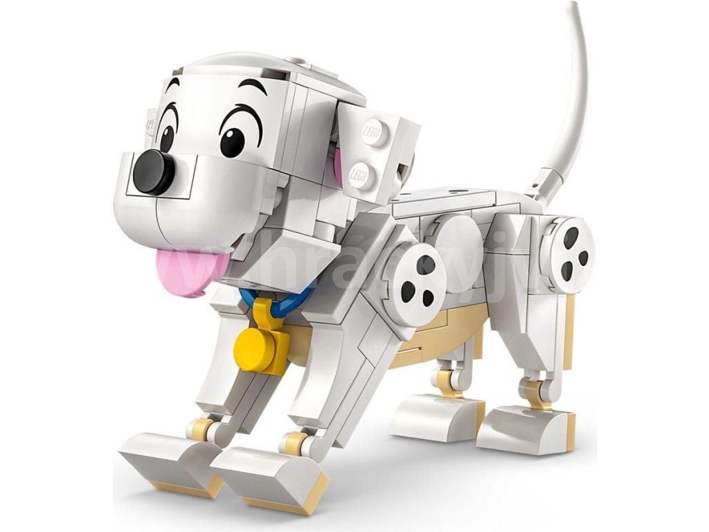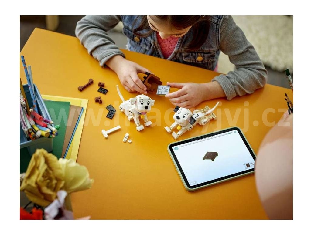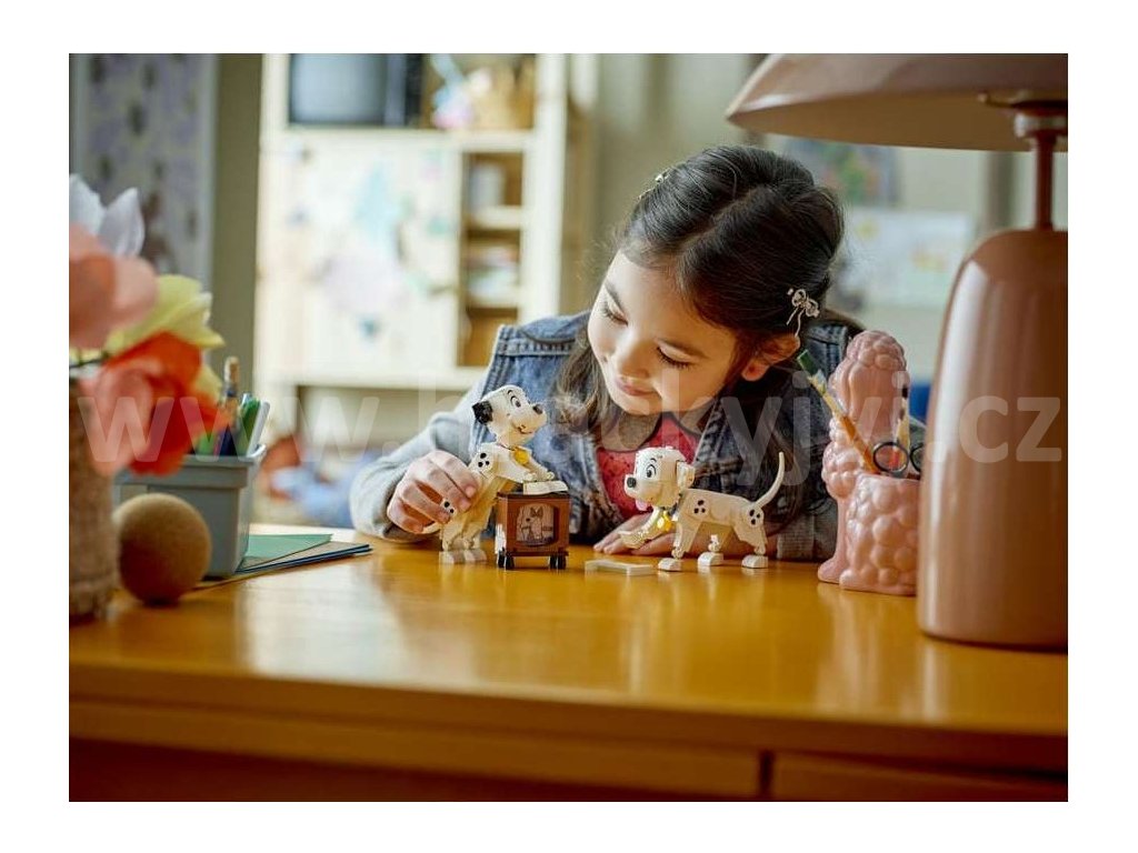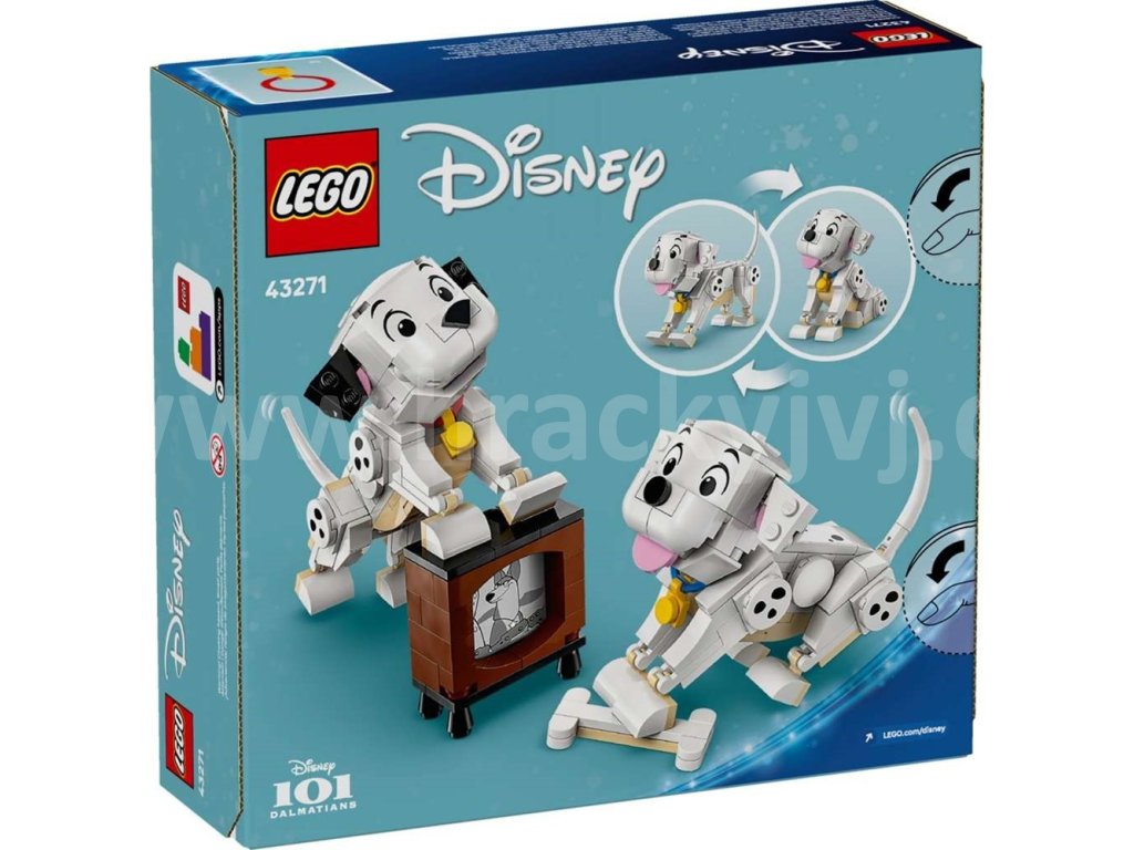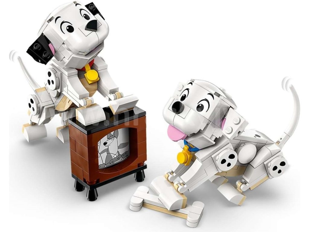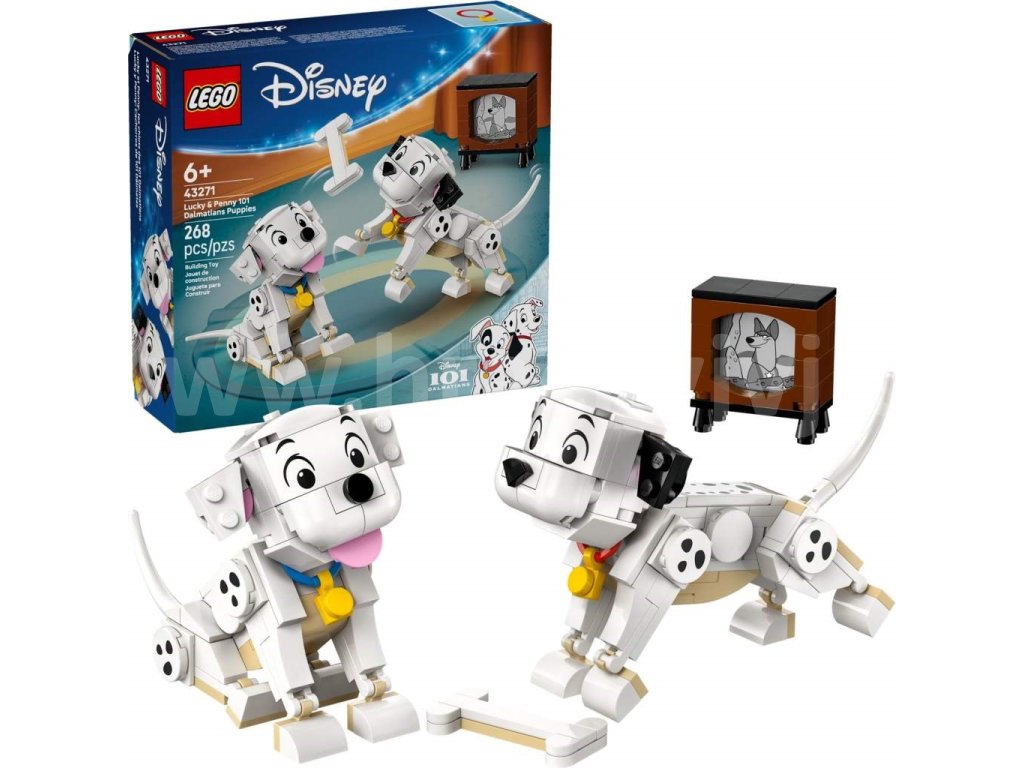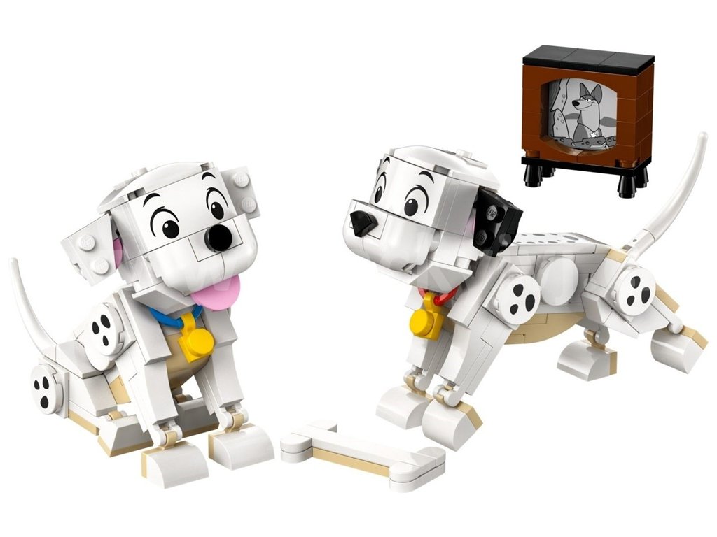 - Dalmatinci všude kolem – Tato stavebnice pro děti obsahuje postavy Štístka a Penny LEGO® ǀ Disney z klasického filmu 101 dalmatinů a navíc kost z kostek a malou televizi s obrazovkou