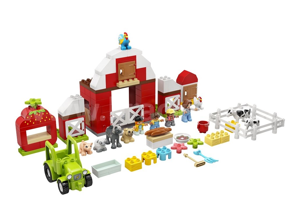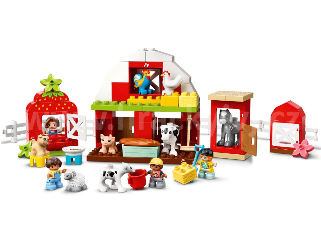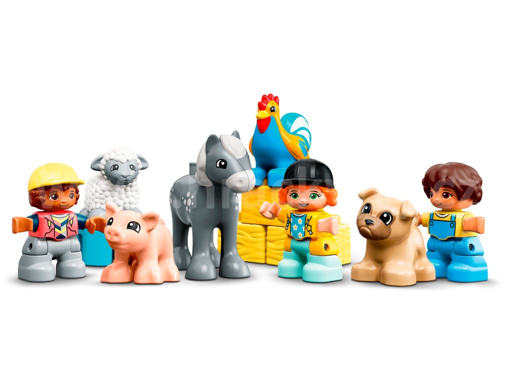 - V sadě najdete traktor, prase, ovci, koně, psa, slepici, kohouta, 2 krávy, 4 LEGO® DUPLO® figurky, sestavitelnou stodolu, realistický balík sena a spoustu parádních doplňků.