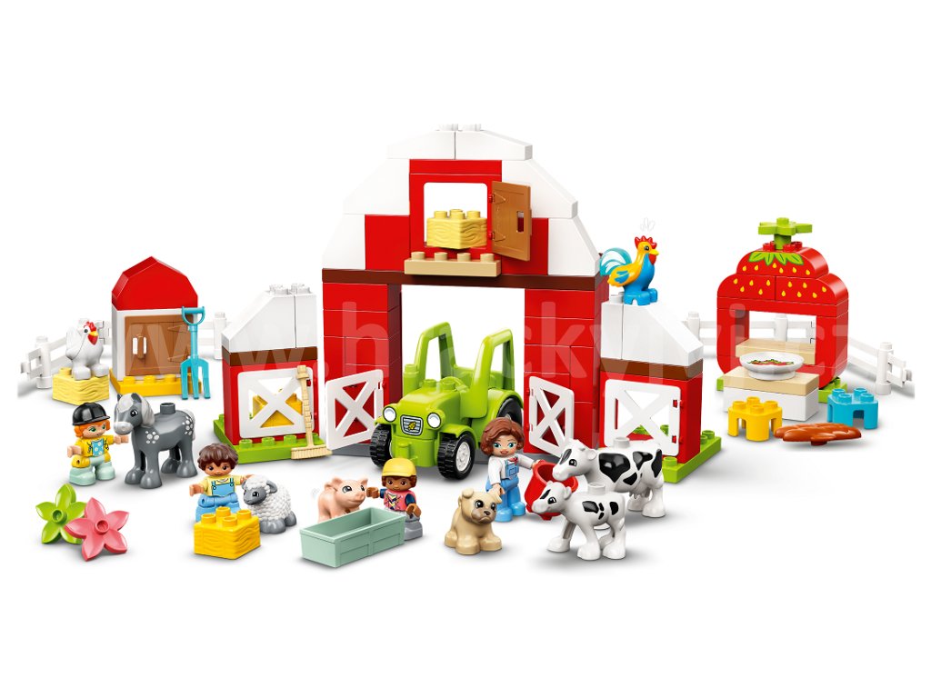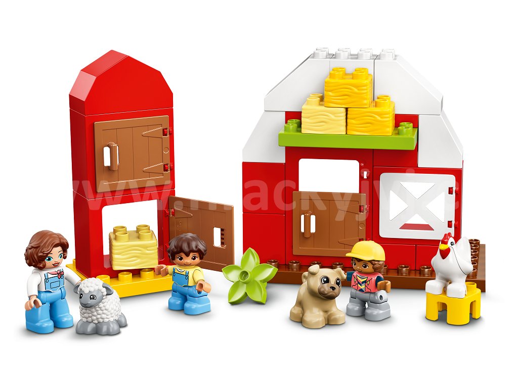 - Tato stavebnice přináší spoustu příležitostí k zábavnému učení všem dětem, které milují zvířátka a farmářské stroje. V sadě najdete traktor, prasátko, ovci, koně, psa, slepici, kohouta, 2 krávy, 4 LEGO® DUPLO® figurky, sestavitelnou stodolu, realistický balík sena a spoustu parádních doplňků.