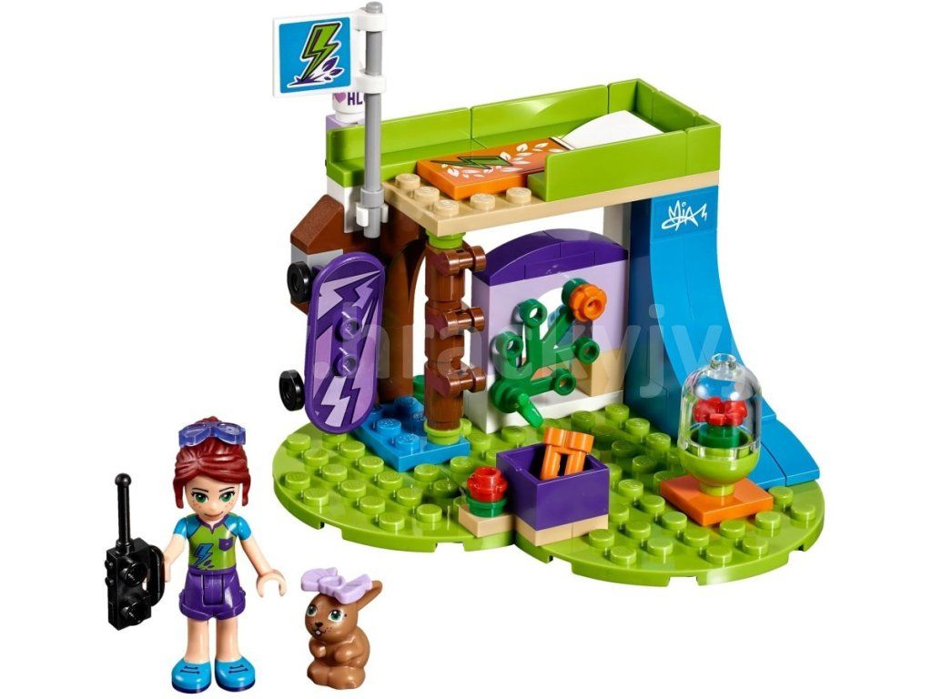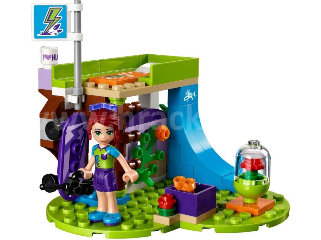 Stavebnice LEGO® Friends Mia a její ložnice je postavena na zelené podložce ve tvaru srdce a perfektně odráží Miinu neposednou povahu. Má postel ve stylu domečku na stromě se schody, pod ní malý domek pro svého králíčka, skateboard a rampu na procvičování nových triků, sportovní vybavení, pochoutky pro králíčka a vysílačku, aby zůstala ve styku se svými přáteli. Součástí sady je mini-panenka Mia a figurka králíčka Twistera.