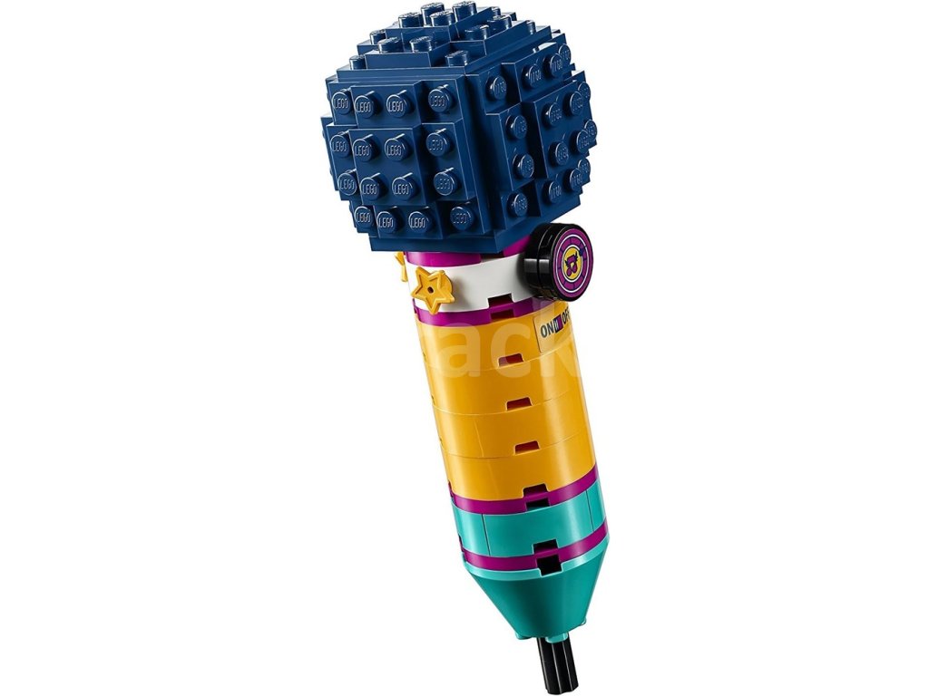 - Obsahuje 5 sestavitelných modelů LEGO® Friends doplňků v životní velikosti: mikrofon, foťák, trofej, vysílačky a robota.