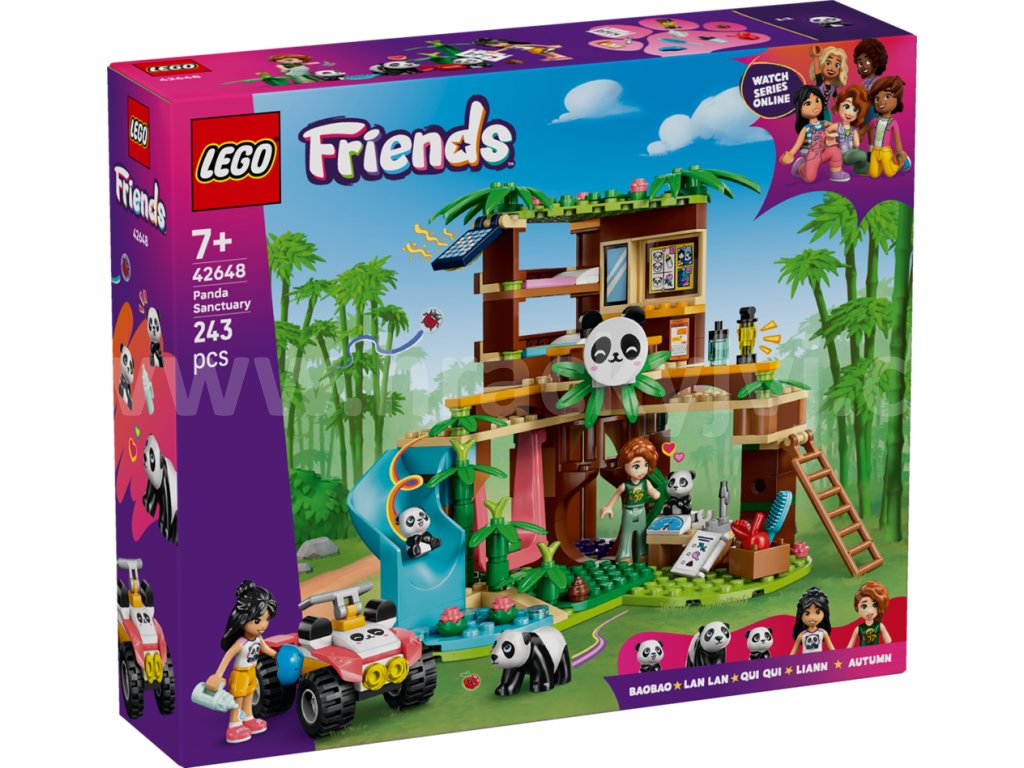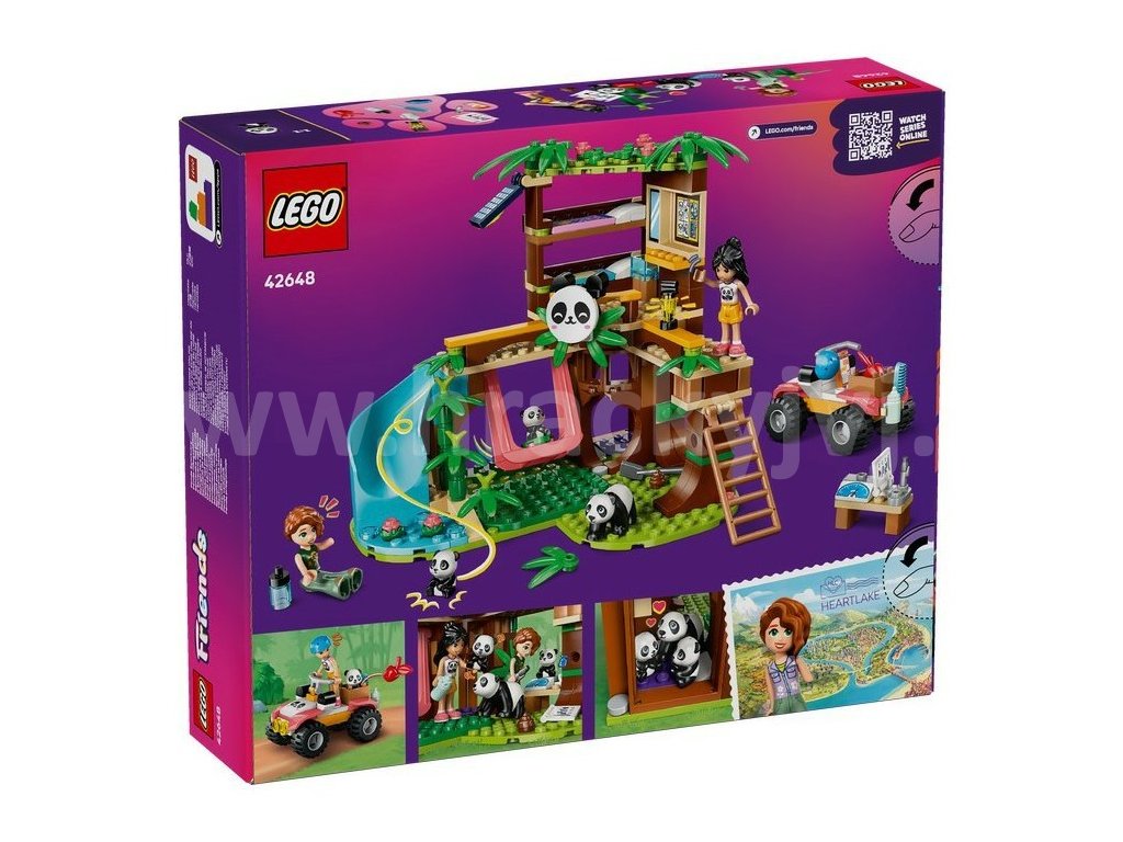 Objevte zábavný dárek pro děti plný pand! Se stavebnicí LEGO® Friends (42648) Péče o zvířátka v pandí záchranné stanici si holky, kluci a milovníci zvířat od 7 let vymyslí vlastní příběhy o záchraně pand. Součástí stavebnice je sestavitelný domek na stromě a čtyřkolka, 2 minipanenky a 3 figurky pand, které inspirují ke kreativnímu hraní. Připravte se na zábavné hraní plné zvířátek! Děti budou vyprávět příběh Autumn a Liann, které pomáhají v pandí záchranné stanici. Součástí stavebnice je celá řada doplňků, včetně váhy a pomůcek pro péči o srst. Nechybí spousta vtipných detailů – nechte pandy svištět po skluzavce do vody nebo se s nimi houpejte na houpačce. Čtyřkolka je ideální pro přepravu bambusu, který pandy tak milují. Když si pandy zdřímnou v jeskyni, kamarádky vylezou po žebříku do domku na stromě, kde najdou psací stůl a 2 postele. S touto stavebnicí si děti užijí vyprávění příběhů o přátelství a rozvinou své sociální dovednosti prostřednictvím hraní.