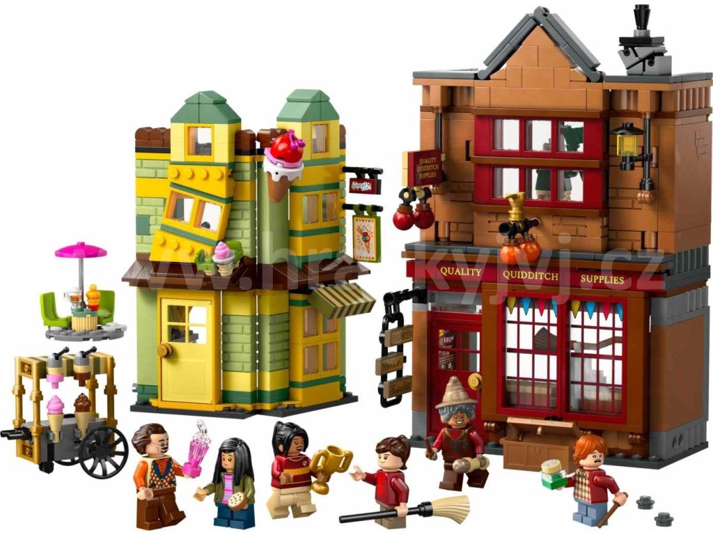 - Model obchodů z Příčné ulice pro děti – Připomeňte si kouzelné scény z Harryho Pottera s autentickými propracovanými modely obchodu Prvotřídní potřeby pro famfrpál a zmrzlinářství Floreana Fortescuea z kostek LEGO®