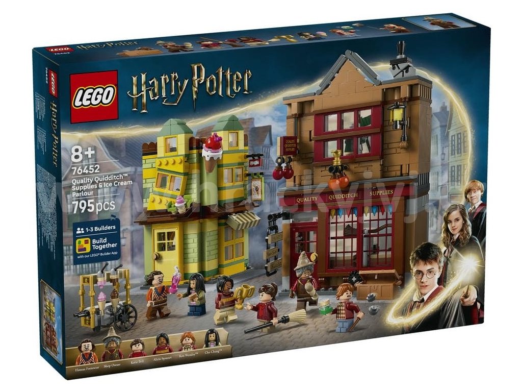 Vydejte se do obchodu Prvotřídní potřeby pro famfrpál a zmrzlinářství Floreana Fortescuea s touto stavebnicí z řady LEGO® Harry Potter™ (76452). Tento kouzelný model Příčné ulice představuje krásný dárek k narozeninám nebo Vánocům pro kluky, holkya fanoušky Harryho Pottera od 8 let. Obsahuje propracované modely 2 slavných obchodů v Příčné ulici z kostek LEGO a 6 minifigurek. V obchodě Prvotřídní potřeby pro famfrpál najdete létající koště a spoustu vybavení pro hraní famfrpálu, které inspiruje ke kreativnímu hraní. Zmrzlinářství lze otevřít pro snadné hraní a nabízí posezení uvnitř i venku a retro zmrzlinový stánek na ulici. Prvotřídní potřeby pro famfrpál a zmrzlinářství lze propojit mezi sebou nebo k dalším modelům z řady LEGO HarryPotter Příčná ulice (prodávají se samostatně) a vytvořit tak okouzlující nákupní ulici z kostek. • Stavějte společně s přáteli a rodinou – Aplikace LEGO® Builder nabízí zábavný společný stavitelský zážitek.