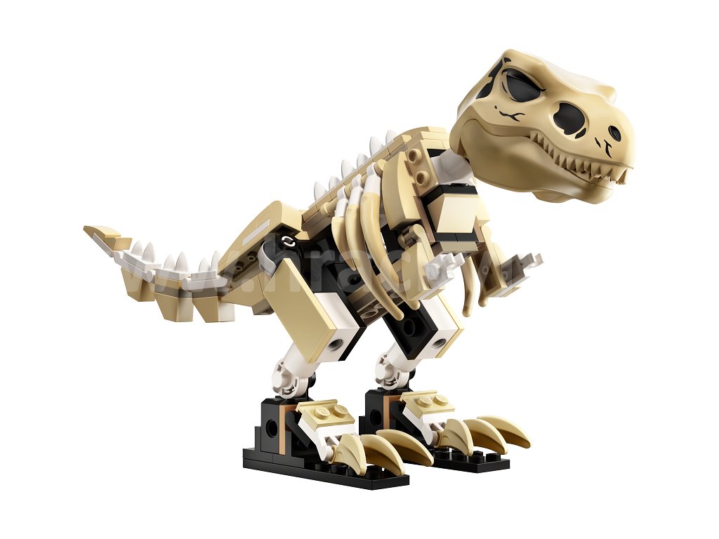 - Zábavná stavebnice obsahuje pohyblivou fosílii T-rexe a výstavní podstavec.