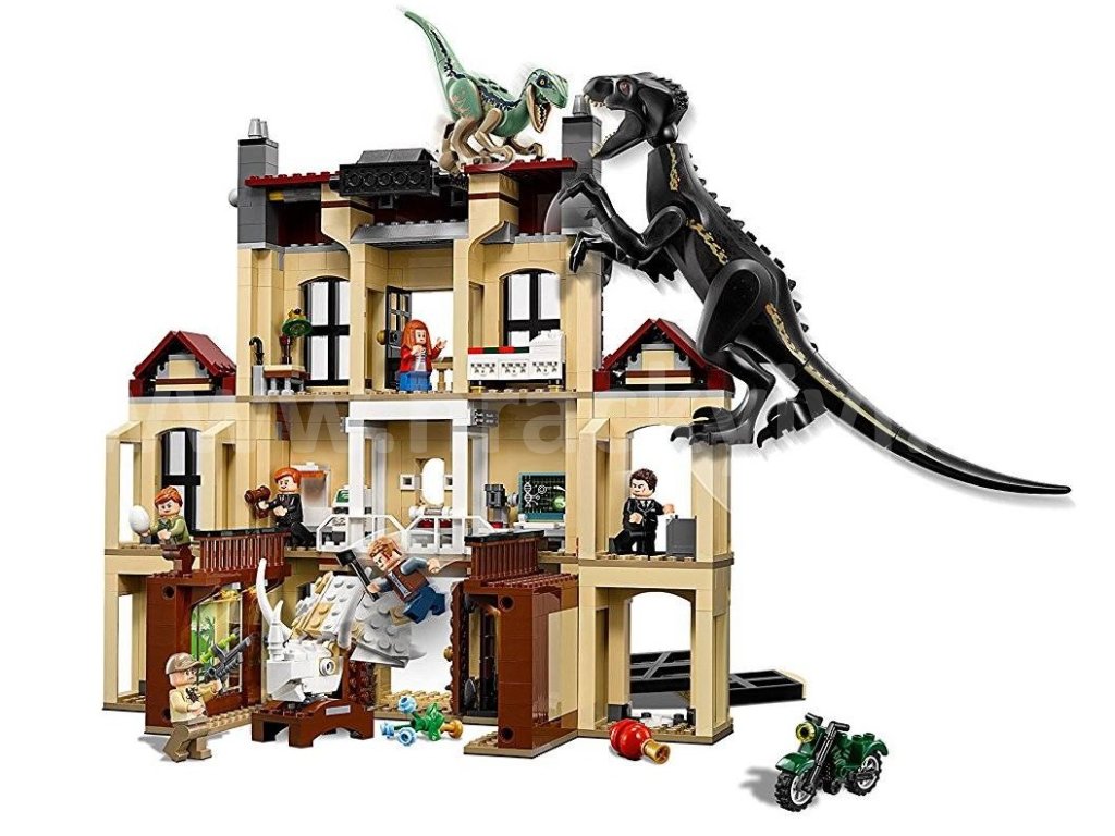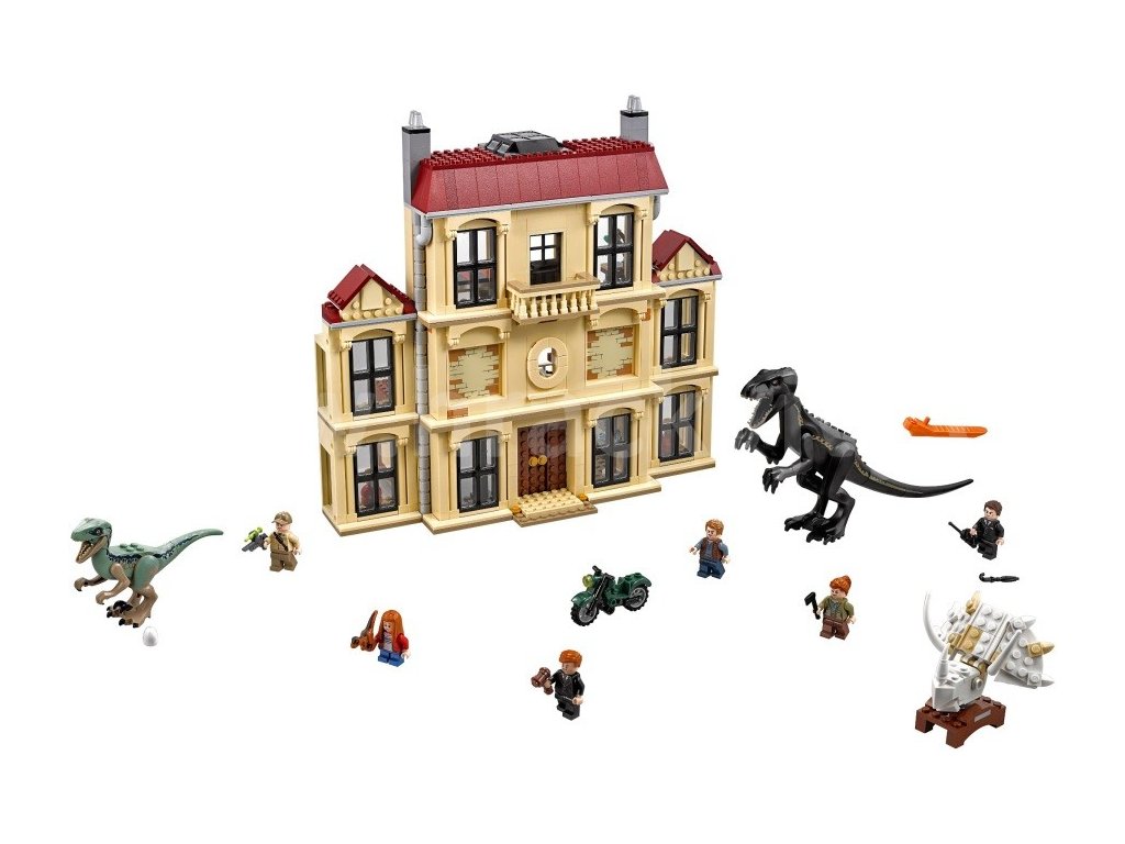 Přehrávej si epickou dinosauří bitvu v této detailně zpracované sadě, inspirované filmem Jurský svět. Pomoz Owenovi, Claire a Blueovi zachránit Maisie před zmutovaným dinosaurem z třípatrové budovy, která má nastavitelné zdi, muzeum, laboratoř, kancelář, ložnici, vyjímatelná okna, funkci padající střechy a obrovskou sestavitelnou lebku Triceratopse. Tato stavebnice pro holky a kluky obsahuje 6 minifigurek: Owen, Claire, Maisie, Mills, Wheatley a Eversol, a navíc figurky Indoraptora a Velociraptora.