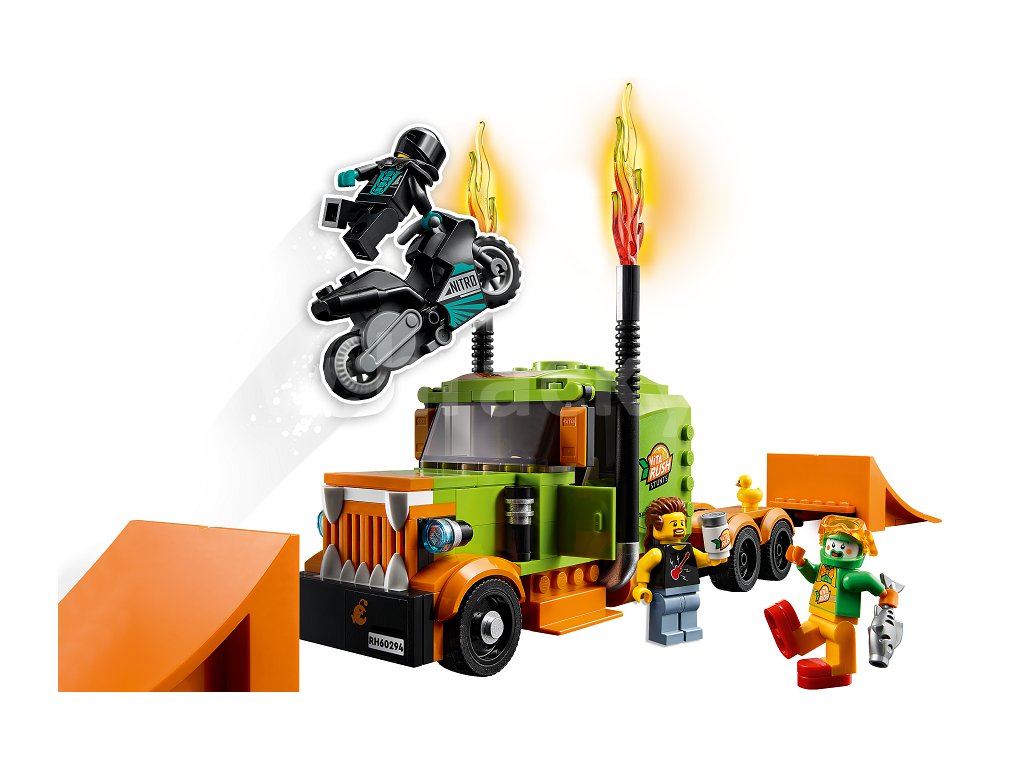 Prémiová stavebnice kaskadérského kamiónu od LEGO® City přináší spoustu prvků pro akční hraní, včetně motorky se setrvačníkem, se kterou můžete provádět dechberoucí skoky. Děti nastartují motorku a vyšlou ji z rampy ve snaze trefit terč nebo shodit klauna do nádrže. 4 minifigurky, včetně 3 postav ze seriálu LEGO City Dobrodružství, pak nabídnou spoustu příležitostí k přehrávání napínavých příběhů! Součástí stavebnice je tištěný návod a také digitální průvodce Instructions PLUS, který je k dispozici v rámci bezplatné aplikace LEGO s návody na stavění. Během skládání tak budete moct využít i nástroje pro přibližování, otáčení a vizualizaci modelů. Stavebnice LEGO City Stuntz zavedou děti do akčního světa, ve kterém na ně čekají motorky se setrvačníkem, parádní vozidla, realistické modely a zábavné postavy. Malí stavitelé tak budou mít spoustu inspirace k přehrávání příběhů ze skutečného života. Stavebnice od LEGO City Stuntz můžete kombinovat pro ještě větší porci vzrušujících herních možností!