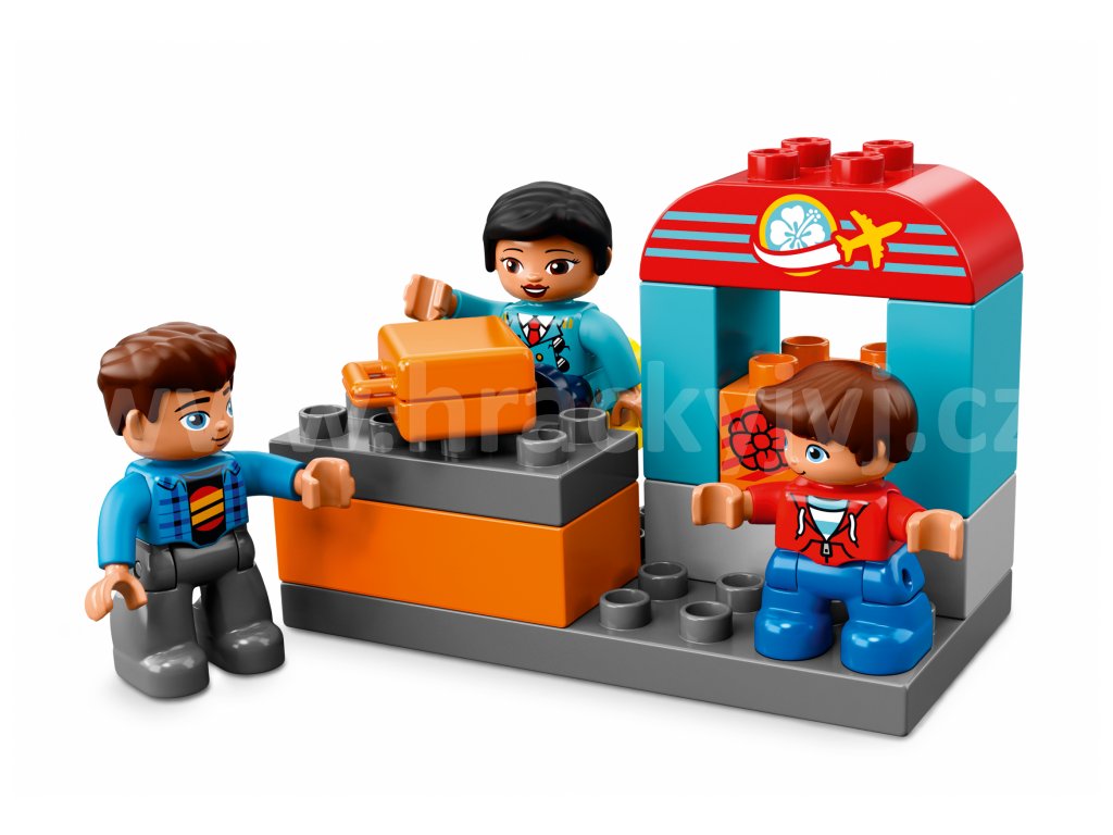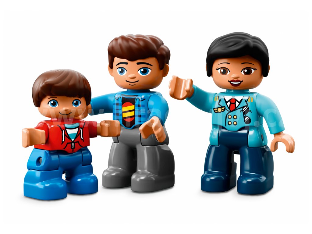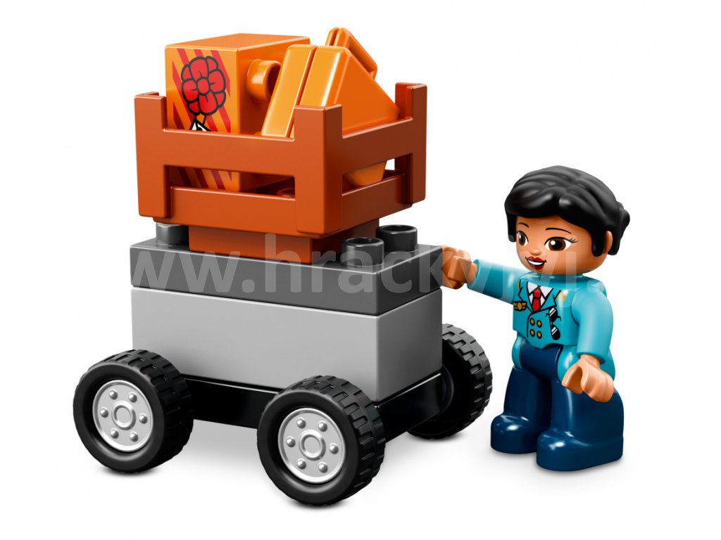 Přehrávejte si scénáře ze skutečného života se sadami LEGO® DUPLO® Moje město, které tvoří snadno pochopitelný svět s moderními DUPLO figurkami. Pomozte vašemu malému pilotovi připravit se k odletu z DUPLO Letiště! Tato jednoduchá stavebnice pro předškoláky ve věku od 2 do 5 let obsahuje nástupní bránu do letadla, dopravník na zavazadla a otáčecí věž letové kontroly. Nechte vaše nejmenší pomoct cestujícím nastoupit do sestavitelného letadla. Pak už nezbývá než jen vyrazit vzhůru do oblak! Sada obsahuje 3 DUPLO figurky: pilotku a tatínka s dítětem.