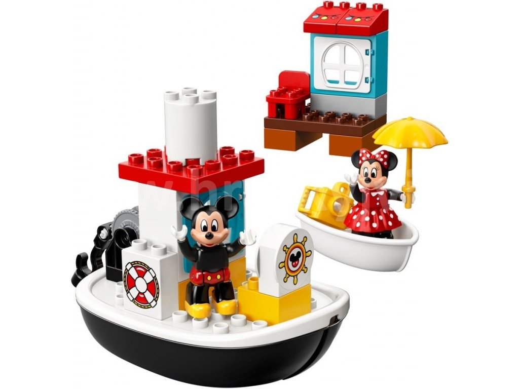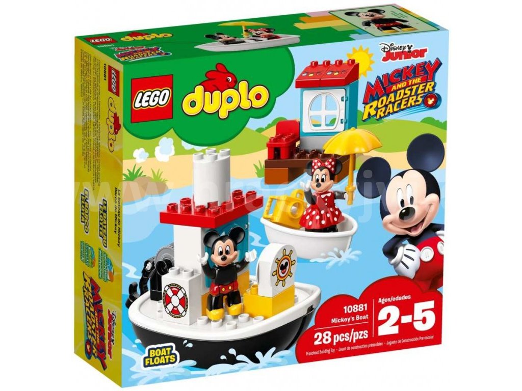 Malí Disney fanoušci rádi z přístaviště vyrazí na super zábavný výlet na moře se sadou 10881 Mickeyho loďka od LEGO® DUPLO®! Pomozte dětem rozvinout jemné motorické dovednosti při stavbě přístaviště a loďky v klasickém Disney stylu. Hrajte si s nimi –pomozte Mickeymu kormidlovat loďku a táhnout Minnie se slunečníkem v malé lodičce. Potom zábava s touto LEGO DUPLO sadou pokračuje v přístavišti. Sada obsahuje 2 DUPLO figurky: Mickey Mouse a Minnie Mouse.