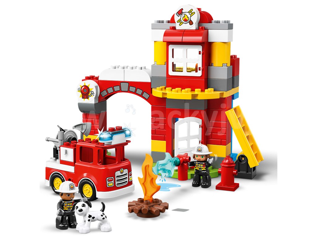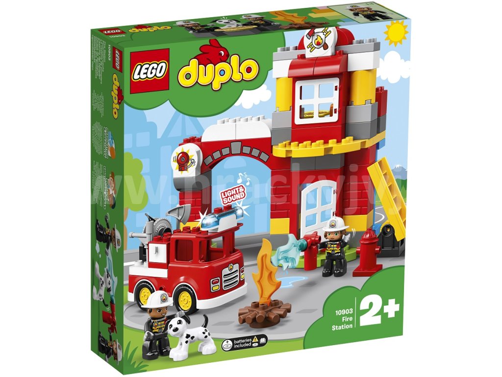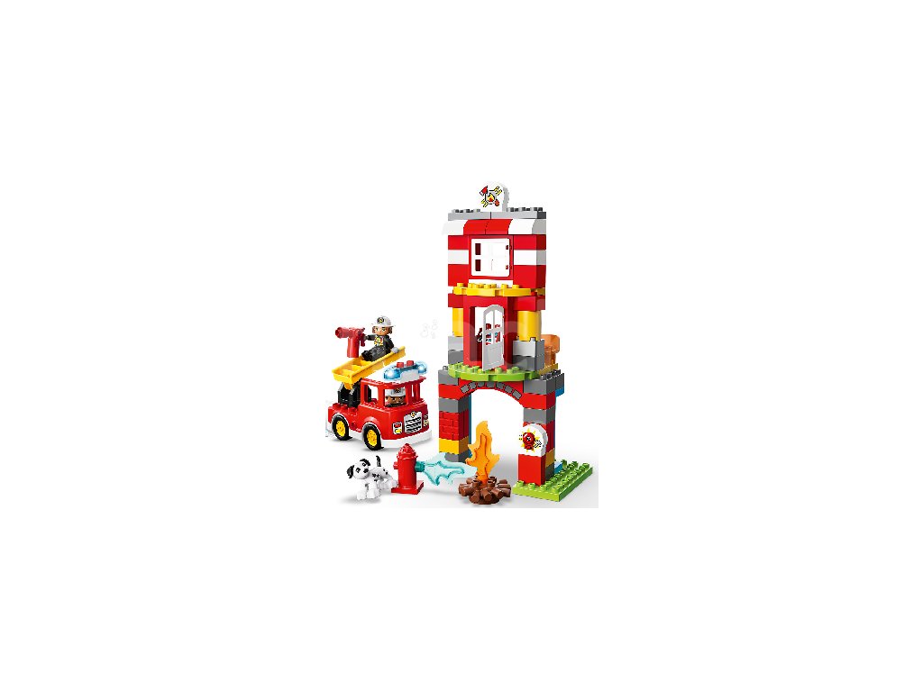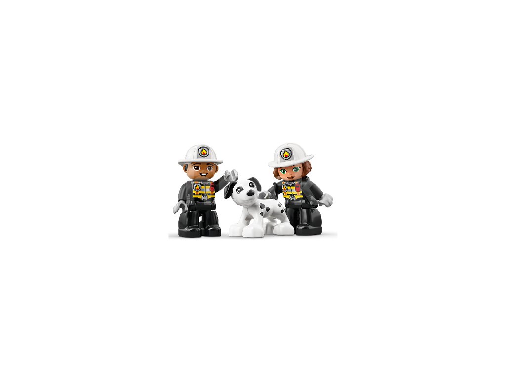Přehrávejte si scénáře ze skutečného života se sadami LEGO® DUPLO® Moje město, které tvoří snadno pochopitelný svět s moderními DUPLO figurkami. Navštivte snadno sestavitelnou 10903 Požární stanici, hrajte si, pomáhejte hasičům při nácviku hašení ohně a vyšplhejte po žebříku, abyste zachránili psa ve věži. Až vám někdo zavolá, pomozte svému předškolákovi naložit hasiče do hasičského auta, zapněte blikající světlo a sirénu a vydejte se na další odvážnou záchrannou misi! Obsahuje 2 LEGO® DUPLO® figurky hasičů a navíc figurku psa.
