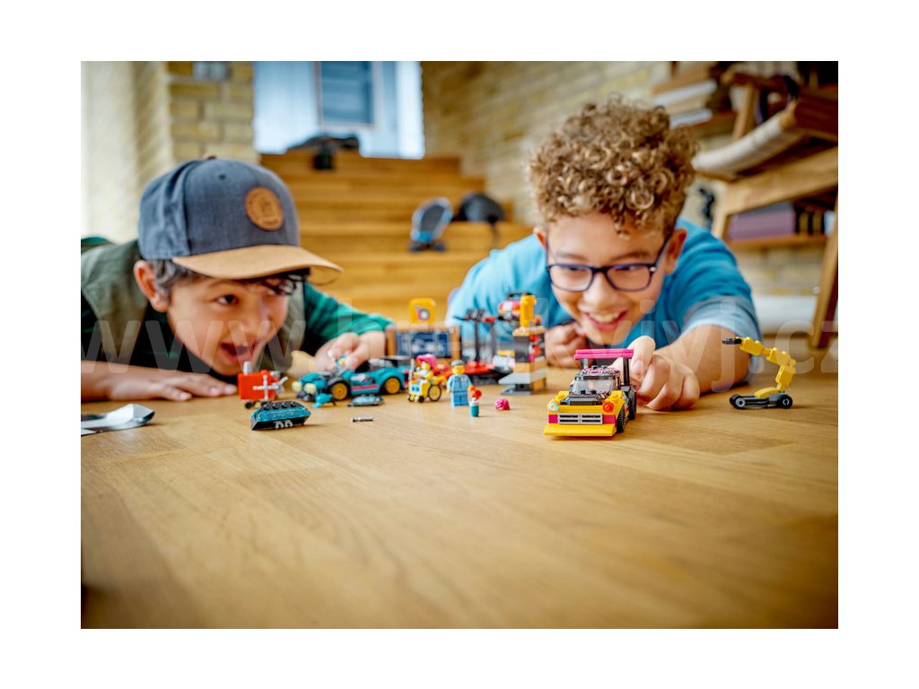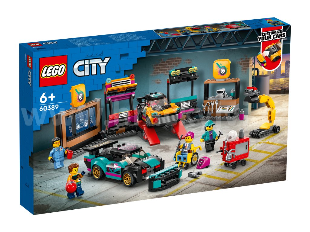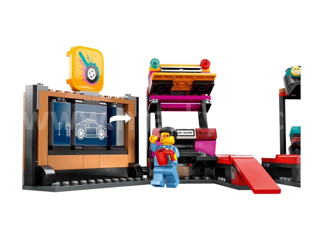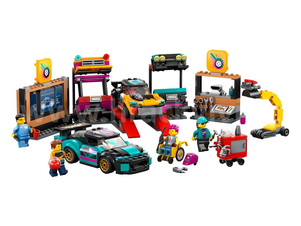 Vítejte v tuningové autodílně v LEGO® City. Vytvářejte úžasné designy pomocí chytré konfigurační stěny. Pomozte mechanikům namontovat parádní světla, zadní spoilery a nárazníky potřebné pro rallye a driftové závody. Najeďte autem na rampu a proveďte požadované úpravy, lakování a svařování. Využijte kladku k montáži různých motorů a zastavte se v tuningové stanici, než se svým bourákem vyrazíte na silnici. Tahle dílna je prostě boží!