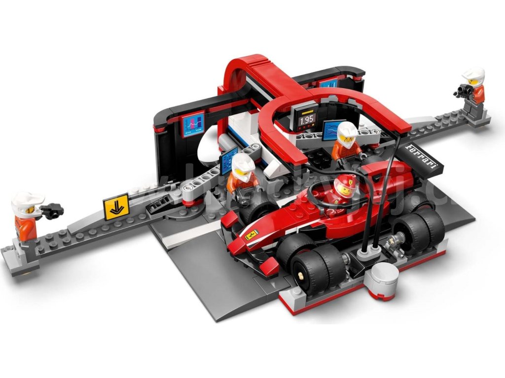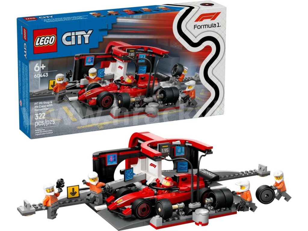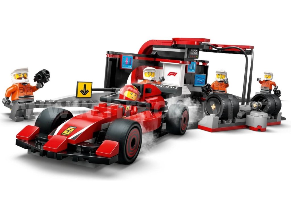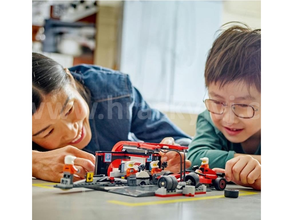 - Co najdete v krabici? – Vše, co děti potřebují k sestavení zastávky v boxech F1® a vozu Ferrari a minifigurky řidiče a 4 členů personálu