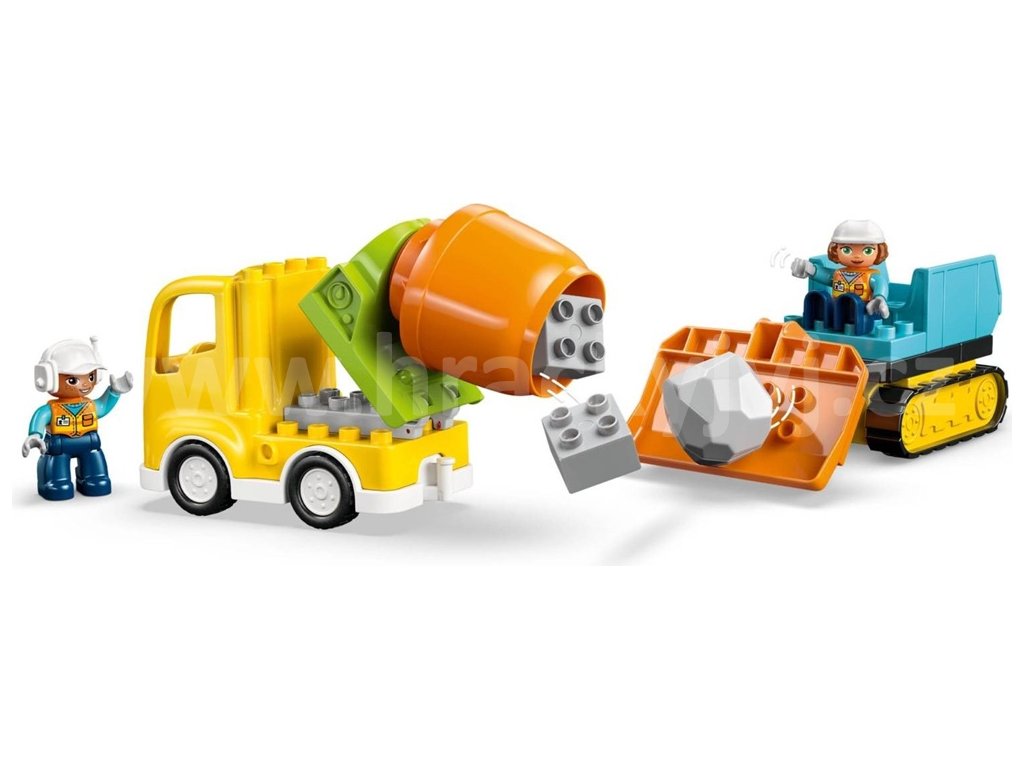 Děti si mohou postavit buldozer se zvedací lžicí, sklápěcí náklaďák, míchačku na beton s otočným bubnem a jeřáb s pohyblivým ramenem a otevíracím drapákem. Z kostek lze také sestavit vysoký jeřáb, nákladní stanici, přes kterou můžou projíždět náklaďáky, a most, pod kterým projíždějí vozidla. Malí stavitelé si se stavebnicí užijí hodiny zábavy, během kterých mohou rozvíjet důležité dovednosti. Děti, které milují řešení problémů, při stavění konstrukcí procvičí kritické myšlení. Dále mohou také rozvíjet orientaci v prostoru díky 2 figurkám dělníků, které pomocí zábavných funkcí nákladního auta přesouvají kostky po staveništi. Stavebnice obsahuje 84 dílků.