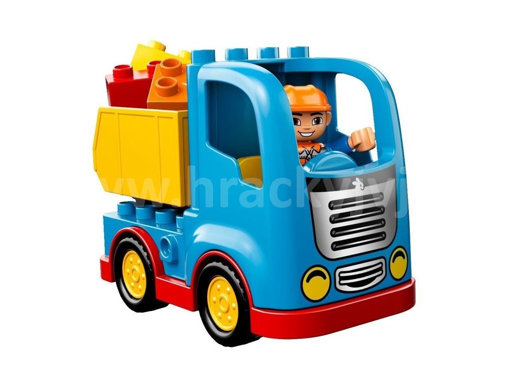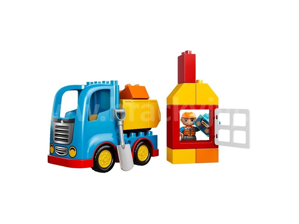 Najeď s náklaďákem na místo, zdvihni sklápěčku a vysyp náklad. Vedle domu stavbař nabírá náklad lopatou a přitom si pohvizduje melodii z rádia. Malé děti si stavění a přestavování těchto báječných modelů zamilují. Obsahuje LEGO® DUPLO® figurku stavbaře.