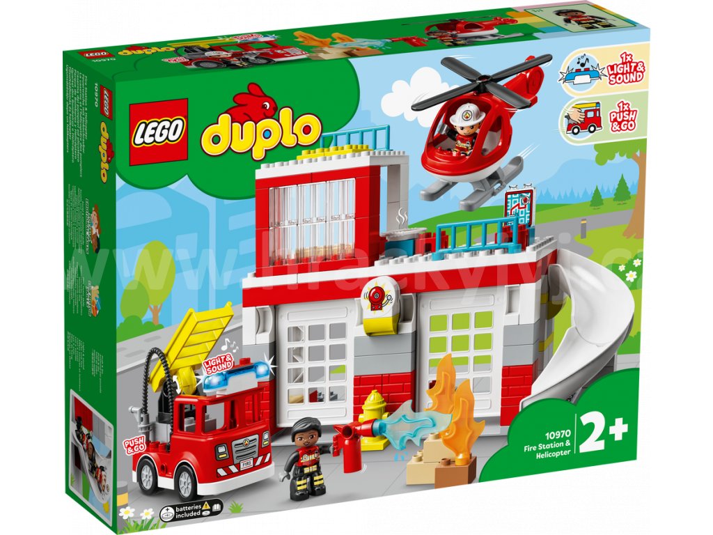 - Rušná hasičská stanice – Stavebnice Hasičská stanice a vrtulník (10970) od LEGO® DUPLO® je nabitá přátelskými postavami, zábavnými aktivitami a spoustou příležitostí rozvíjet důležité schopnosti hrou
