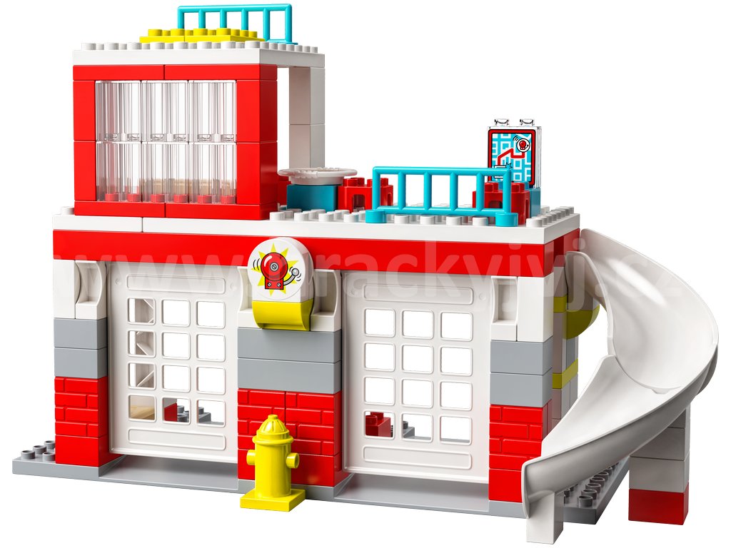 - Realistické detaily – Tato všestranná sada obsahuje skluzavku pro rychlý výjezd, vyklápěcí dveře, jimiž může projet hasičský vůz, dílek v podobě ohně a hasicí přístroje, postel, židli, stůl, mapu, pizzu a spoustu dalších prvků.