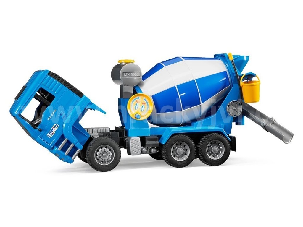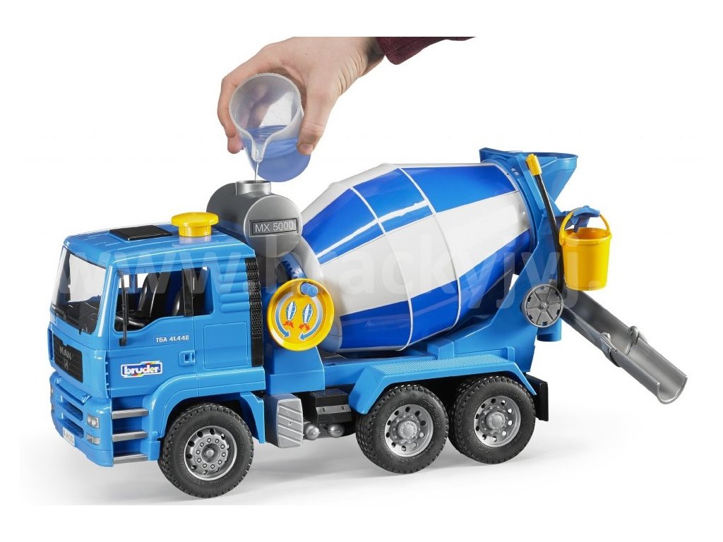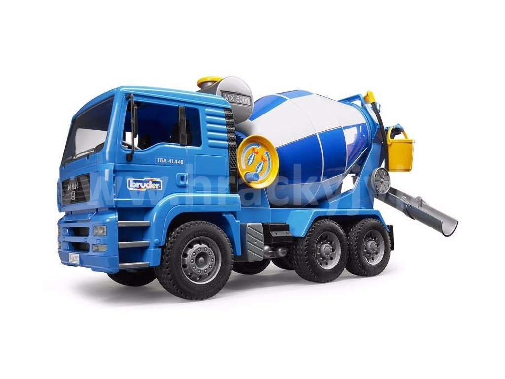MAN TGA míchačka betonu je detailně propracovaný třínápravový model domíchávače MAN. Míchačka má otáčecí buben, sklápěcí zrcátka, sklopnou kabinu řidiče, plnitelnou nádrž na vodu s hadicí a skluzem pro beton, kterým lze otáčet. Vůz má měkké profilové pneumatiky a závěsné zařízení. Pomocí boční kličky lze otáčet plně funkčním mixážním bubnem s míchacími lopatkami a promíchávat obsah mixu. Balení obsahuje nádobu na vodu, kbelík a výklopné žlaby na transport betonu. Vhodným doplňkem pro tento model je zvukový a světelný maják br2801 - není součástí.