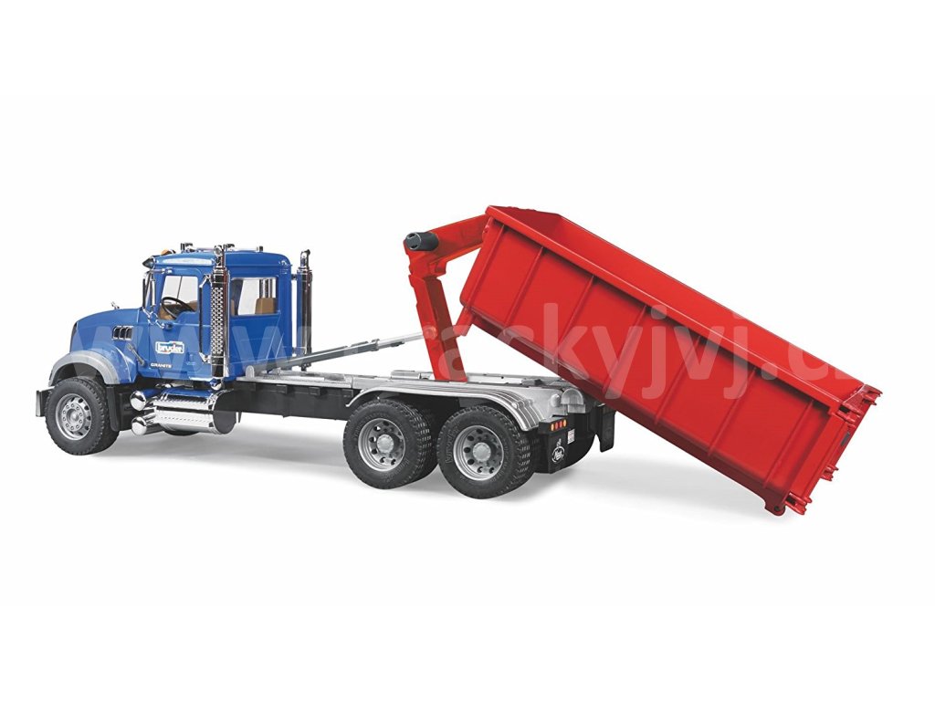 Nákladní auto MACK Granite je detailně propracovaný model skutečného náklaďáku. Čelní sklo je vyrobeno z průhledného nerozbitného polykarbonátu, dveře kabiny lze otevřít, boční zrcátka jsou sklopná a vyklápěcí kapota umožňuje pohled na blok motoru. Nechybí měkké profilové pneumatiky a vyklápěcí kontejner s otvírací zadní částí.