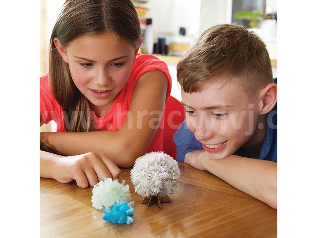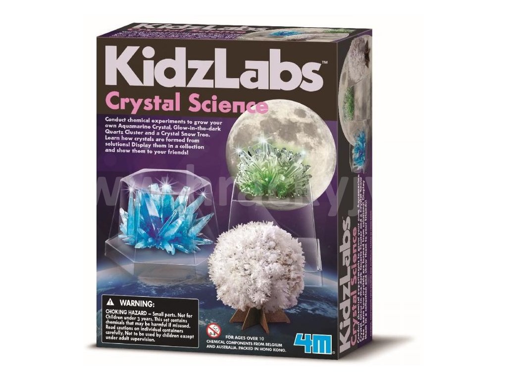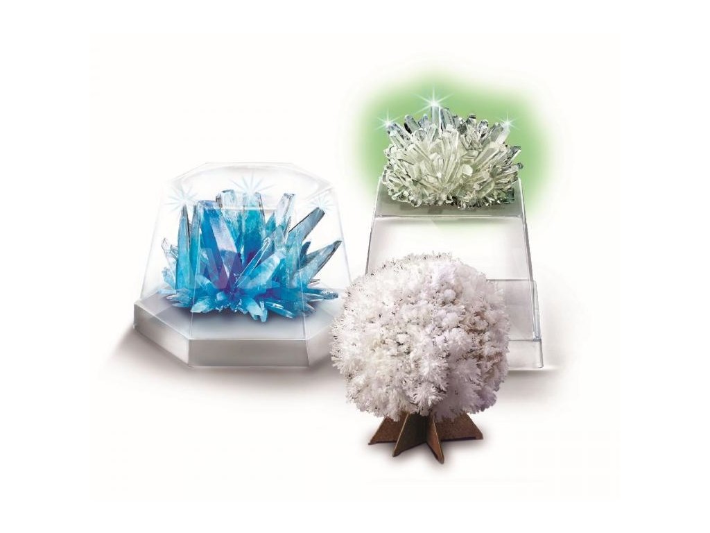 Proveď řadu chemických pokusů - pěstuj si vlastní sadu akvamarinových krystalů, ve tmě zářících měsíčních krystalů a krystalových stromů. Pozoruj, jak vzniká uskupení krystalů z roztoků. Vyrob si celou sbírku a ukaž svým přátelům!
