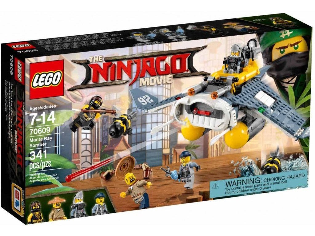 Poplach! Vojáci ze žraločí armády shazují bomby na NINJAGO® City ze svého létajícího bombardéru Manta Ray. Vrhni se přímo do akce spolu s hrdinským nindžou Colem a zachraň Shen-Li. Vyhni se pružinovým vystřelovačům bombardéru Manta Ray a opětuj útok s pomocí velkého kladiva. A když žraločí bojovníci odpojí svůj člun, připrav se na další napínavou bitvu - tentokrát na vodě!