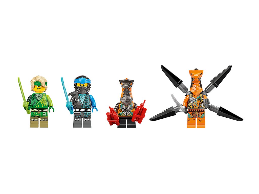 - 4 minifigurky – Součástí je Lloyd s mečem, kterého lze vylepšit pomocí kápě; Nya s mečem; zmijí letec s jetpackem a mečem; a v neposlední řadě krajtí útočník s dynamitem a balistou
