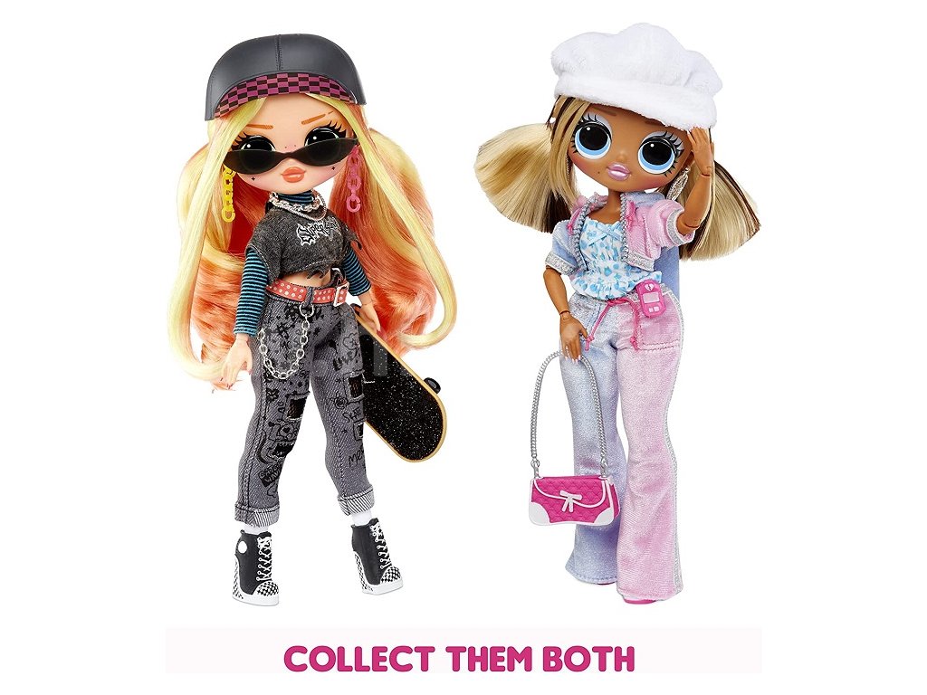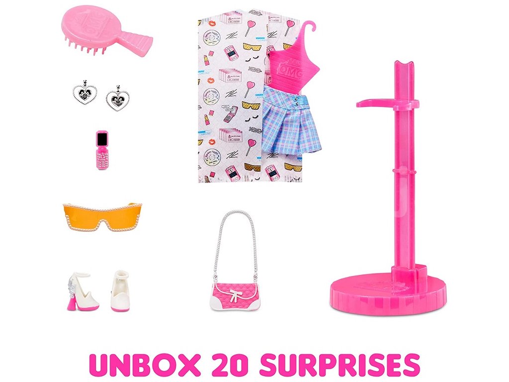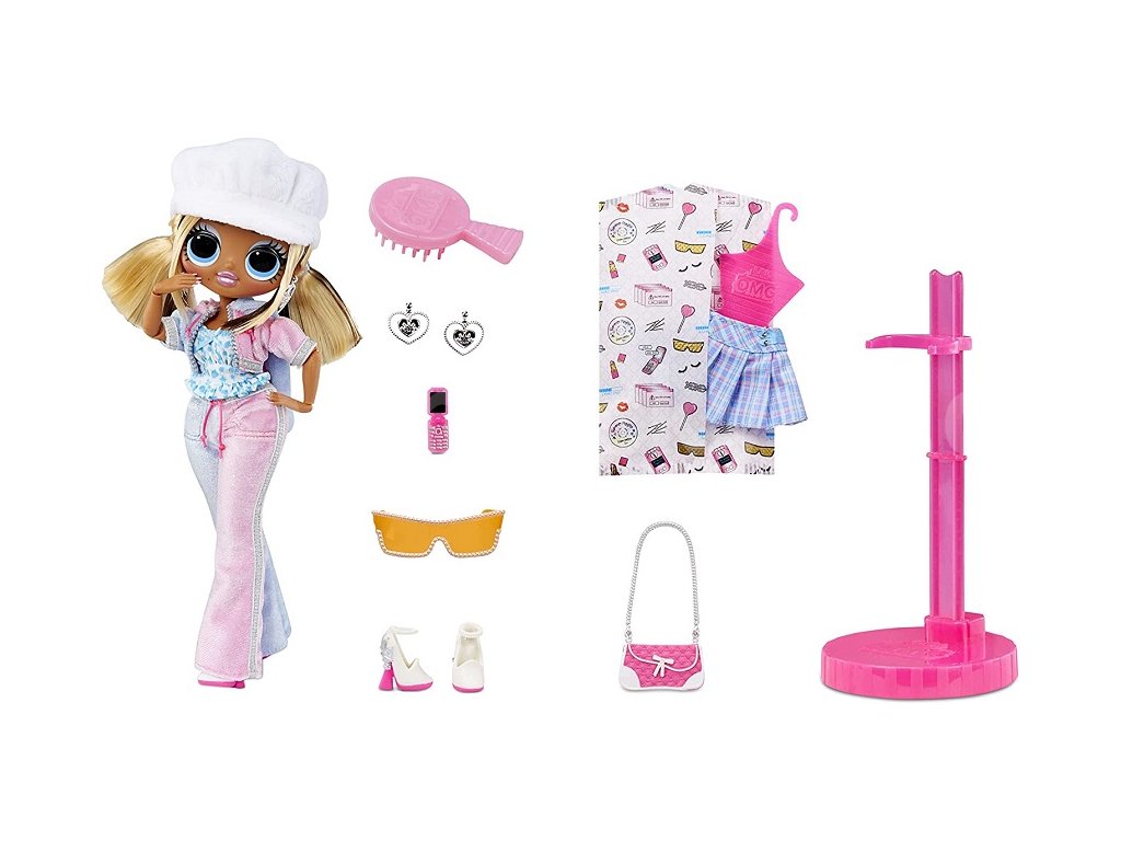 OMG Velká ségra má ohromující rysy, krásné vlasy a svůj vlastní báječný styl. Jsou velkými sestrami ke svým mladším sestřičkám – klasickým L.O.L. panenkám. Obal rozložíš v praktickou šatnu, se kterou si můžeš opakovaně hrát. Balení obsahuje 1 L.O.L. Surprise! Velkou ségru Trendsetter s ohebnými klouby na rukou a nohou, 20 překvapení (boty, doplňky, outfity, a další). Velikost panenky je cca 24 cm.