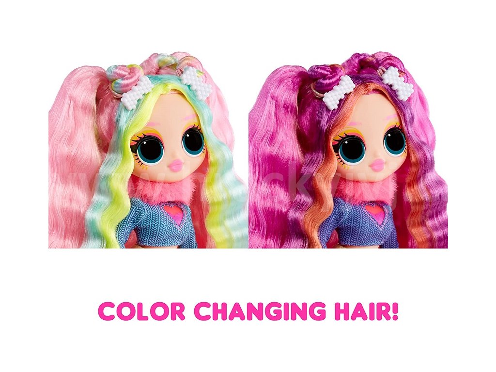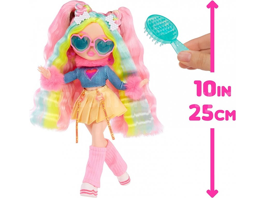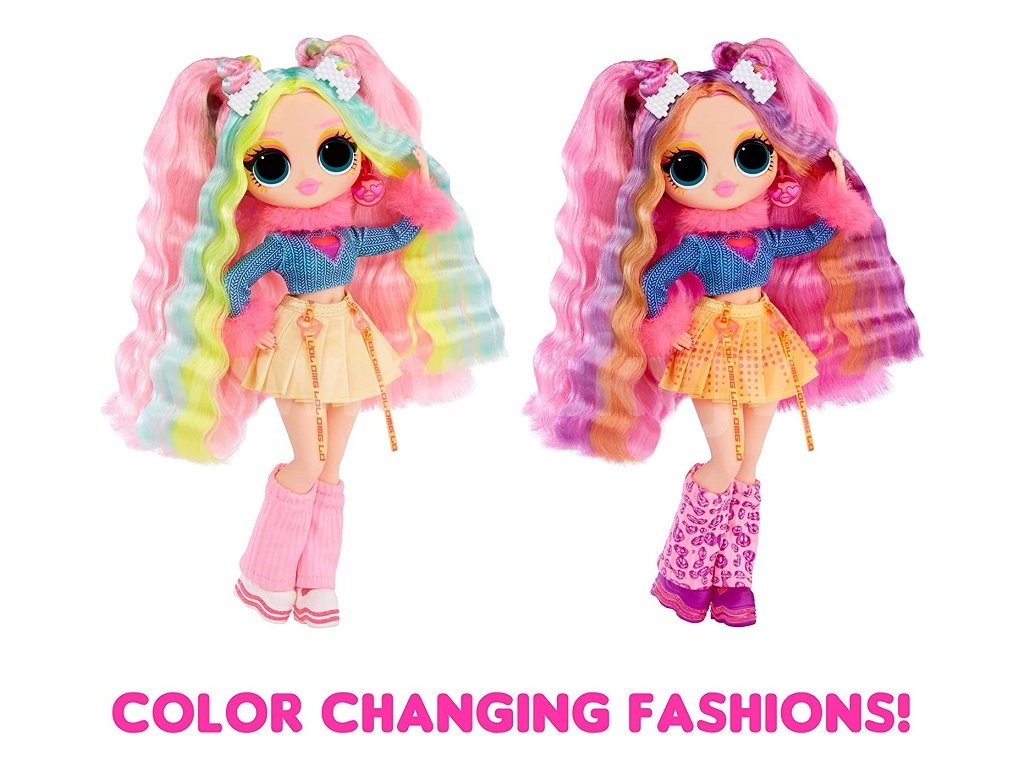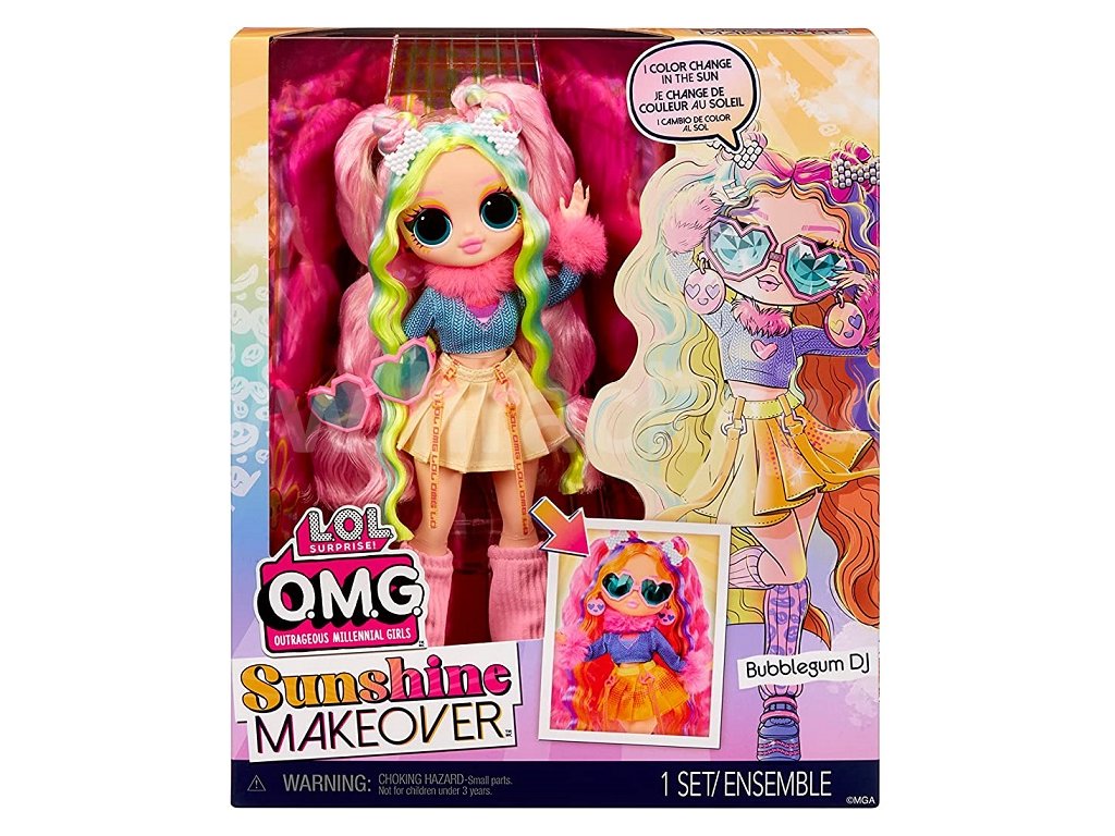 Představujeme úplně nové O.M.G. Velké ségry, které jsou velkými sestrami ke svým mladším sestřičkám – klasickým L.O.L. panenkám. V plné své kráse se předvedou třeba až venku na výletě. Vezmi je na procházku a sleduj, jak mění barvu jejich vlasy a outfit. Změna barvy je aktivována UV zářením a funguje, i když je zataženo. V balení najdeš 1 panenku L.O.L. Surprise! Sunshine OMG Velká ségra - Bubblegum DJ a mnoho překvapení, včetně různých módních doplňků.
