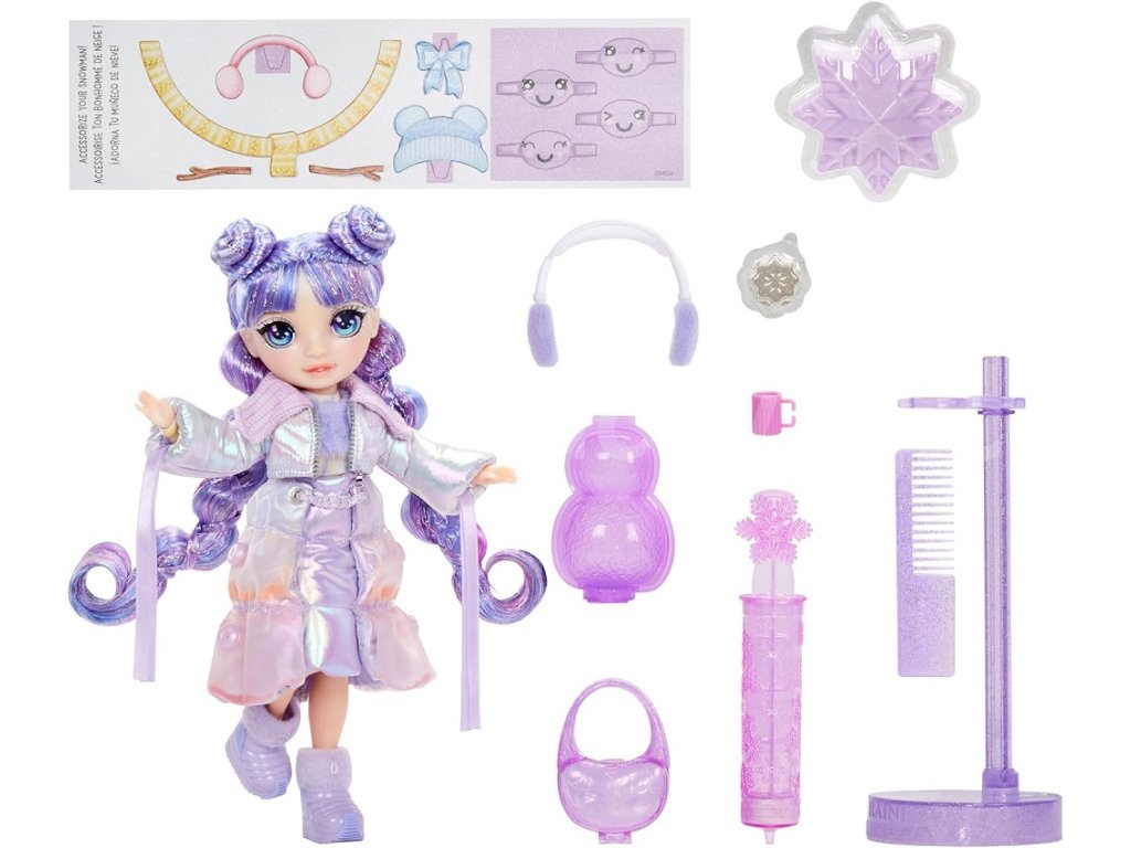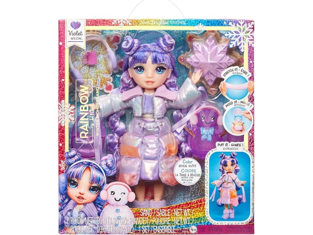Fashion panenky se připravily na sníh! Mají nejen zasněžené oblečky, ale dokonce i kouzelný sníh ukrytý v různých částech outfitu! Stačí kapátkem z balení přidat do „sněhu“ vodu a sledovat, jak se outfit nafoukne a odhalí nové barvy. Oblečení je možné upravovat podle vlastního vkusu znovu a znovu. Každá panenka má navíc sněhuláka s tvarovatelným „sněhem“ (písek kinetického typu) a další zimní doplňky. Balení obsahuje 1 panenku Violet Willow, 1 outfit podtrhující její individualitu a zimní doplňky.