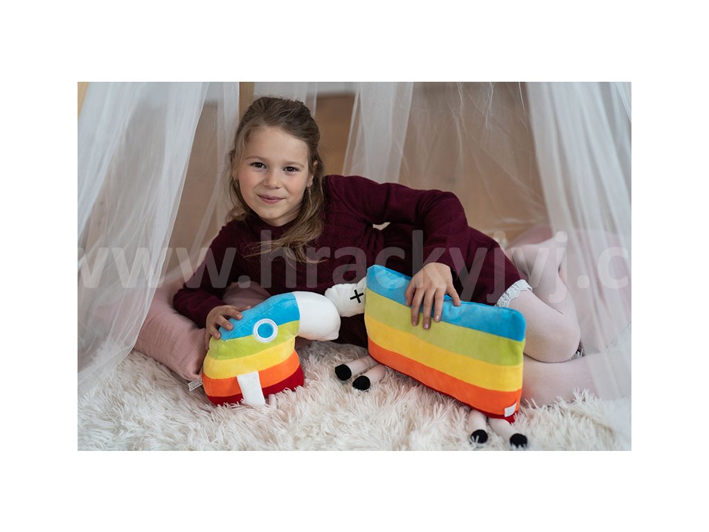 Plyšový polštářek duháček z oblíbeného dětského programu Déčko vysílaného Českou televizí. Z kvalitní a hebké plyše. Velikost cca 25x19 cm. Vhodný pro děti od narození.