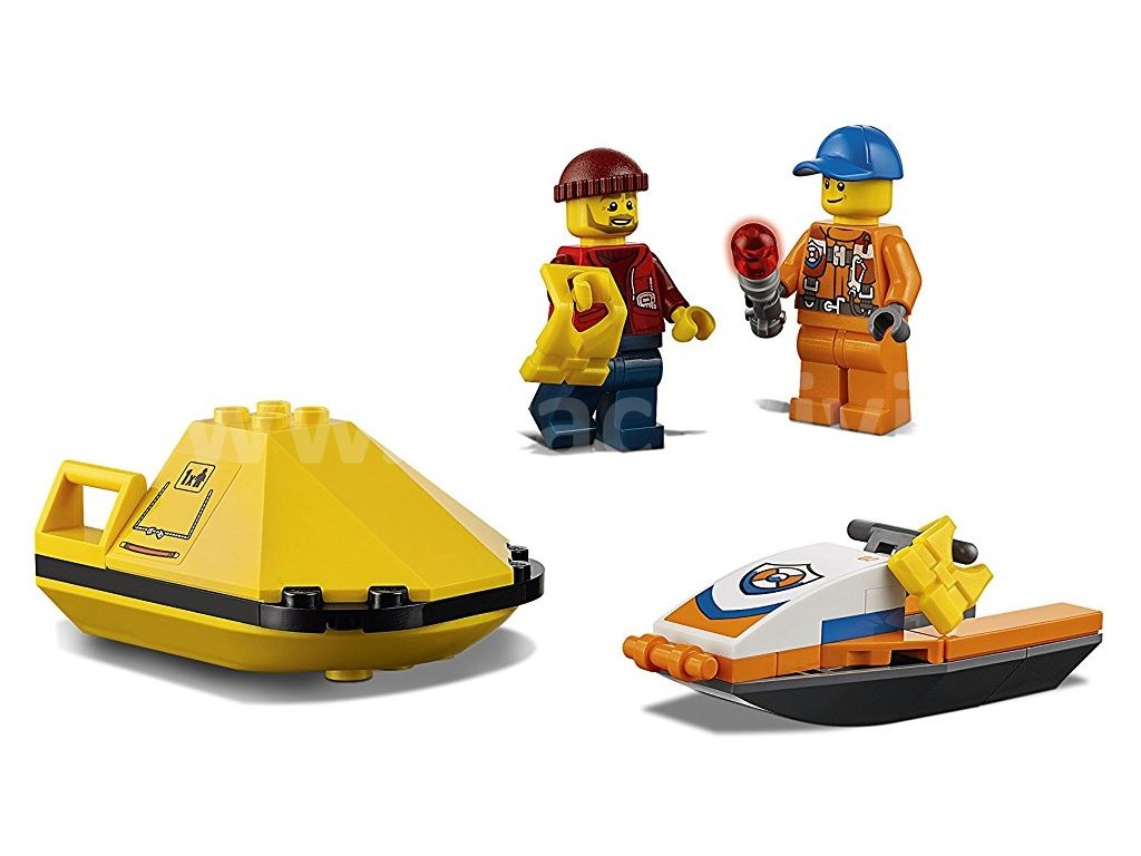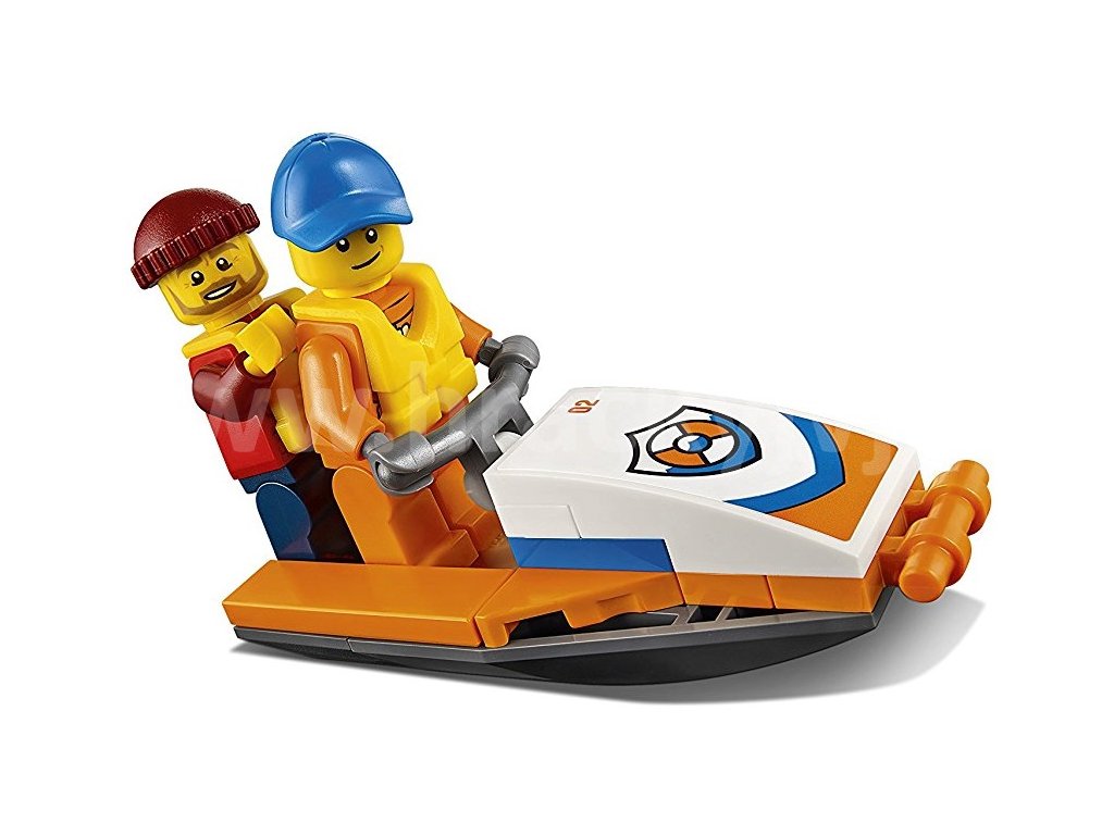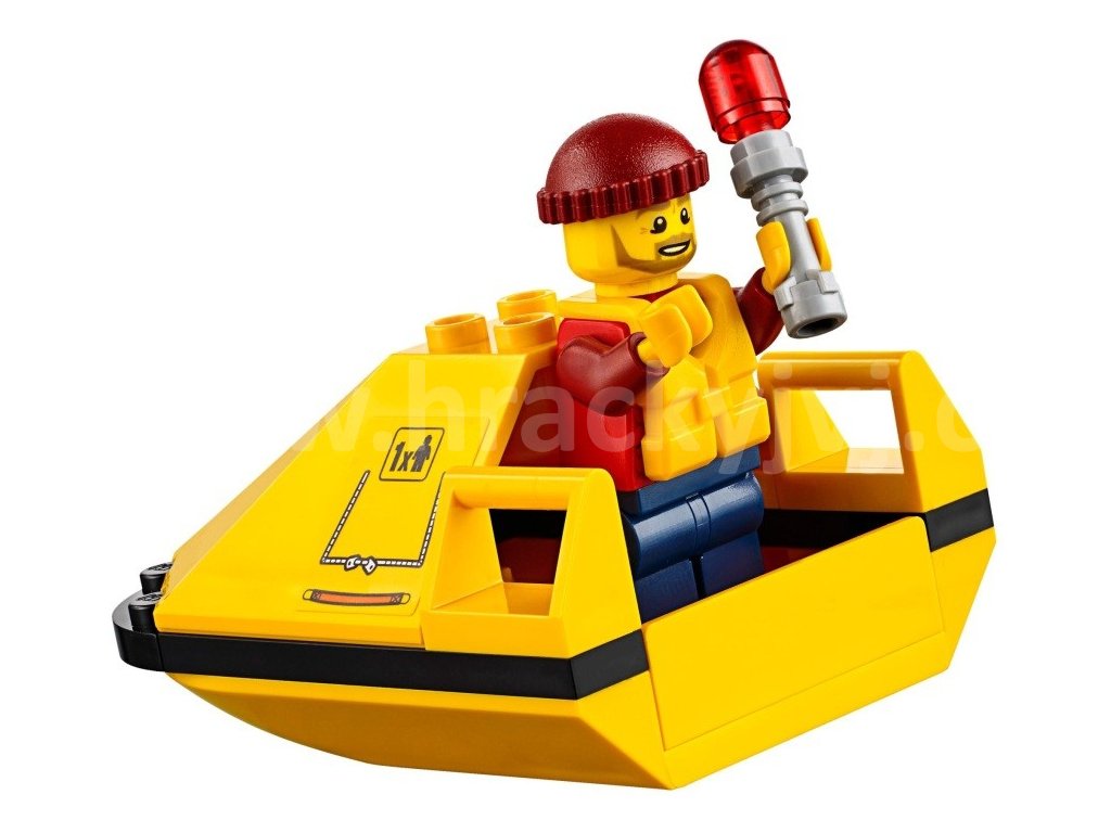Naskoč do kokpitu a vydej se na záchranou misi na volné moře! Co je to za světlo? Přeleť kolem záchranného člunu a zbloudilého námořníka. Poté s hydroplánem přistaň, vyklop zadní dveře a vyraz pro něj na vodním skútru. To všechno jako součást vzrušujícího dne při práci u pobřežní hlídky od LEGO® City! Součástí jsou dvě minifigurky: pilot hydroplánu a námořník.