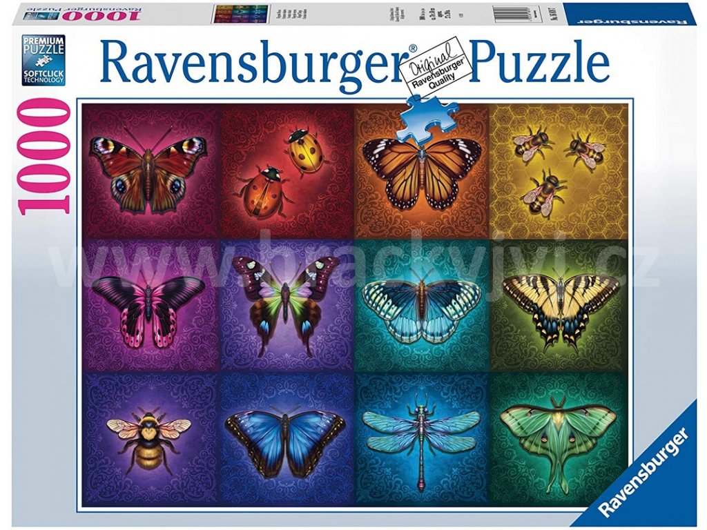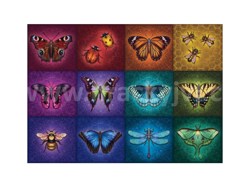 Puzzle s motivem nádherných motýlů z 1000 dílků. Složený obrázek má rozměry 70x50 cm.