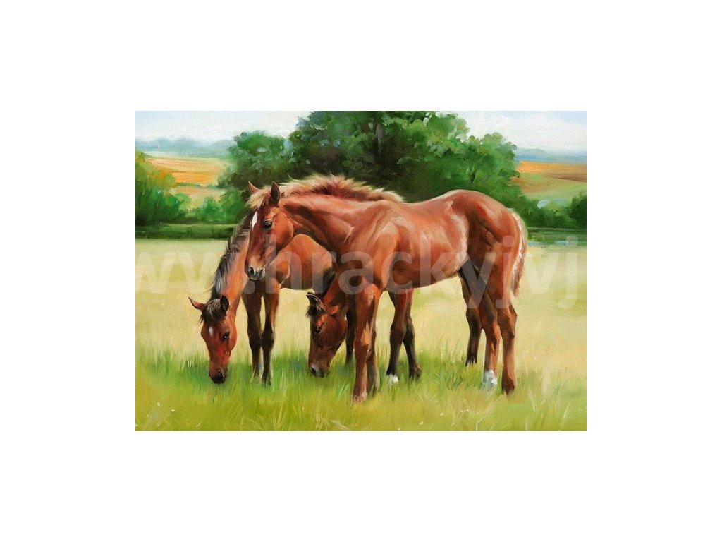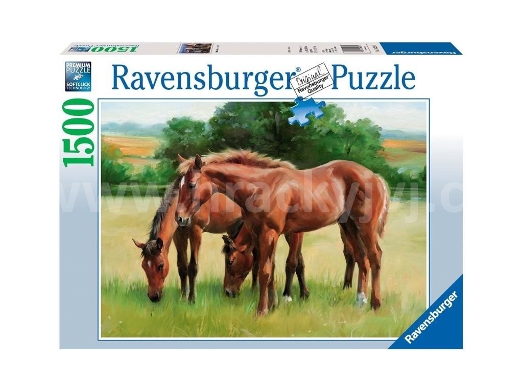 Postavte si puzzle s motivem koní v trávě z 1500 dílků. Složený obrázek má velikost 80x60 cm.