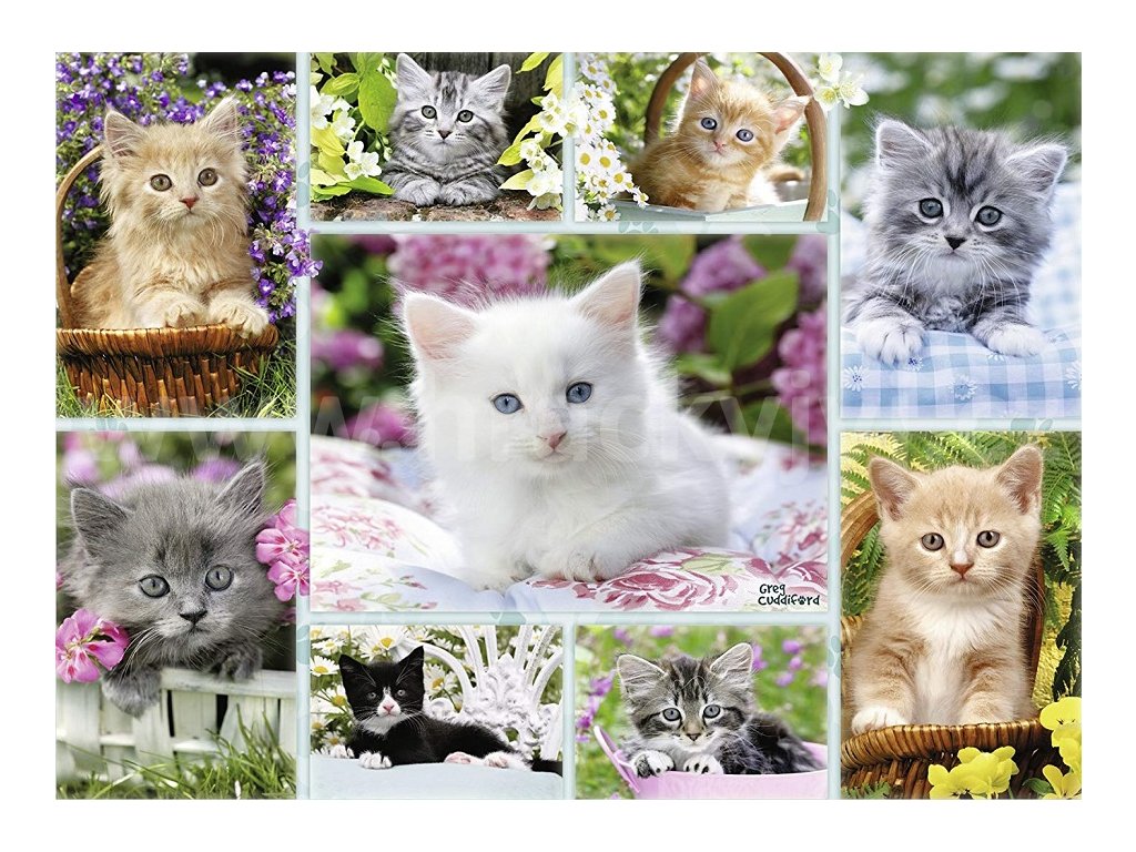 Postavte si puzzle s motivem koťat v košíku z 500 dílků.