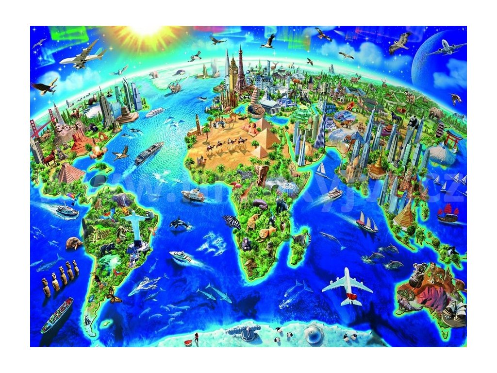 Postavte si velkou mapu světa z 300 XXL puzzle dílků. Velikost složeného obrázku je 49x36 cm.