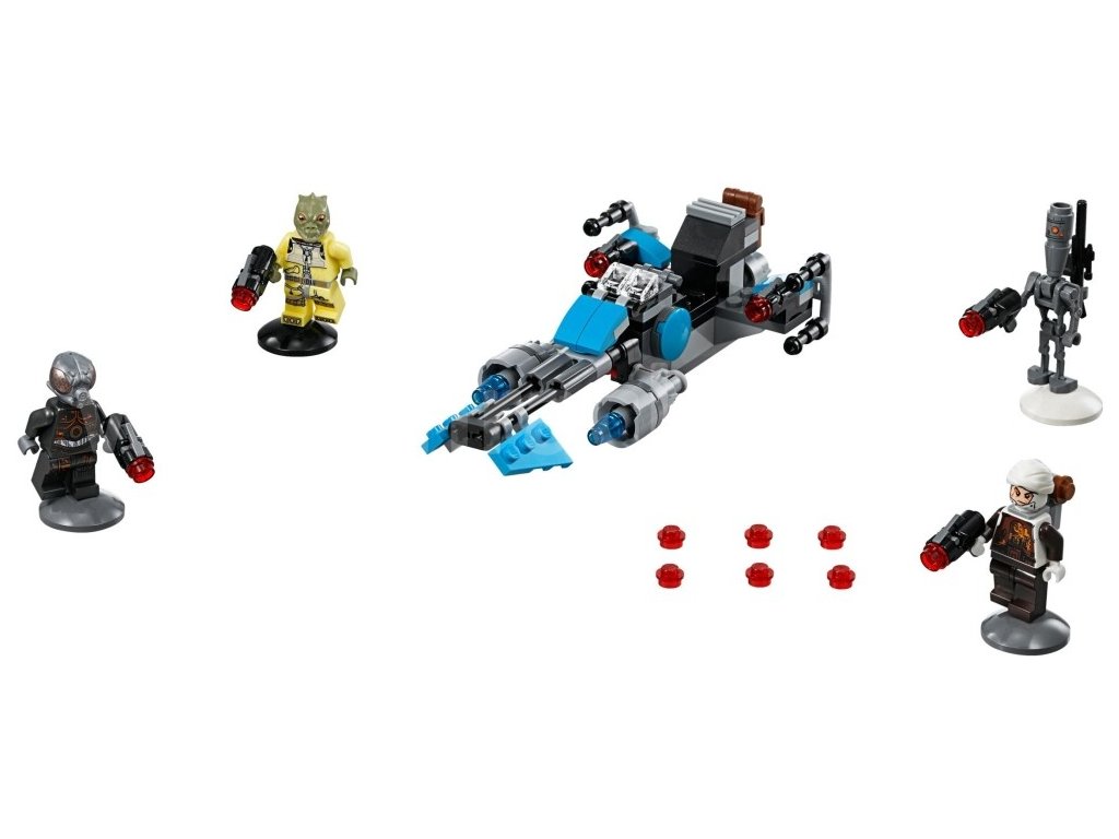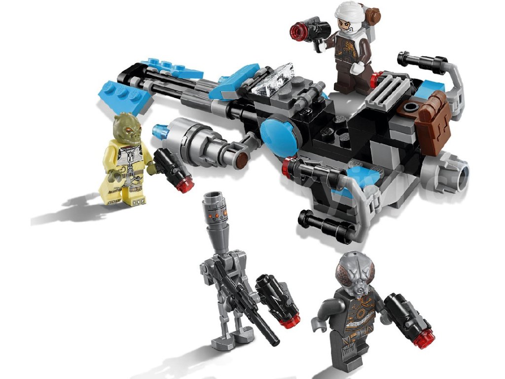 Získej pro Dengara, Bosska, IG-88 a 4-LOM náskok s jejich vlastní speciálně upravenou Speederovou motorkou námezdního lovce. Tato speederová motorka s nápadnými modrými prvky, dvěma vystřelovači a prostorem na zavazadla v zadní části rozjede tvá dobrodružství LEGO® Star Wars na plné obrátky! Součástí jsou tři minifigurky: Dengar, Bossk a 4-LOM, navíc figurka IG-88.