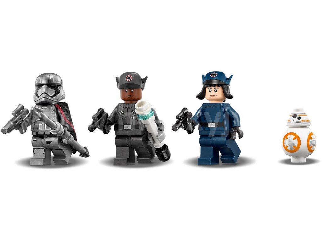- Obsahuje 3 minifigurky: Finna a Rose v oblecích Prvního řádu, Kapitánku Phasmu, a navíc figurku BB-8.