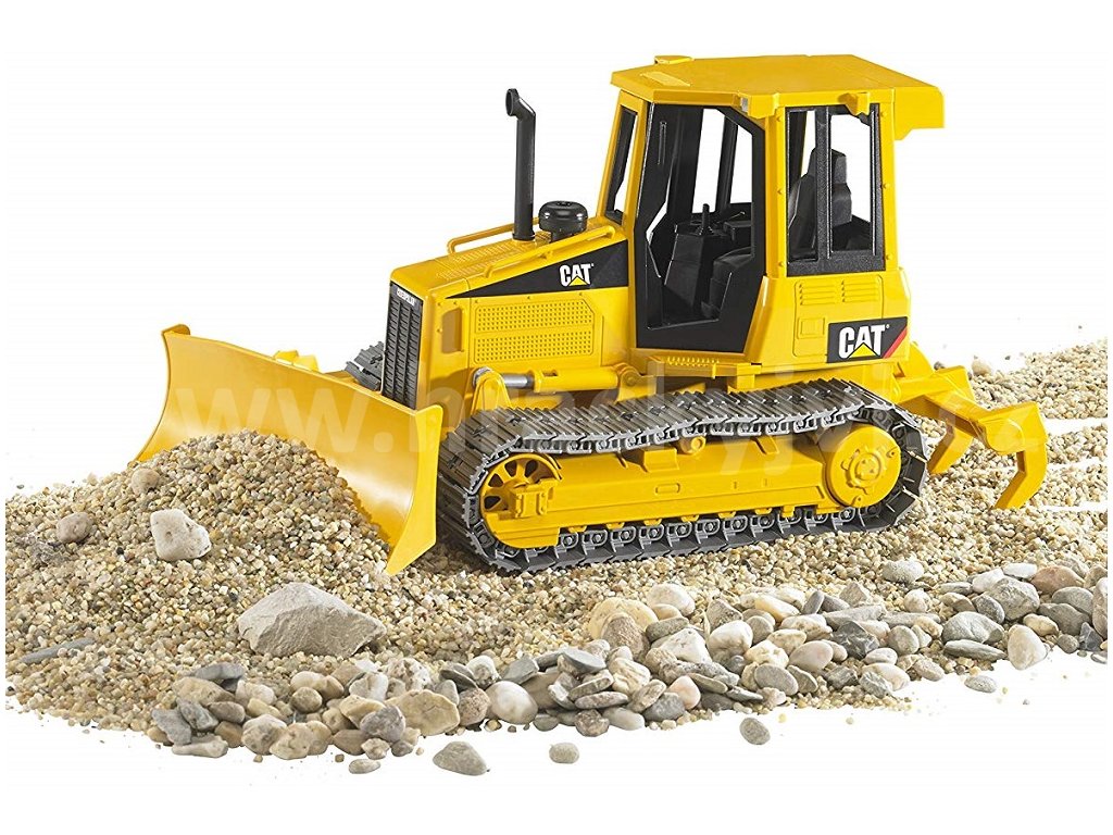 Detailně propracovaný model buldozeru s typickým designem vozů CATERPILLAR. Má gumové pásy, naklápěcí masivní čelní radlici, kterou je možné snadno naklápět na obě strany a lze s ní též sjíždět dolů a nahoru. Je velmi oblíbenou zmenšenou napodobeninou skutečného stroje. Hračka je vhodná pro hraní v písku.