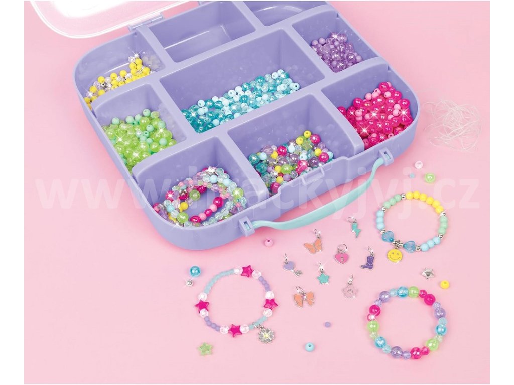 Čeká vás přenosný šperkařský zážitek! Vyrobte si více než 30 náramků přátelství s tímto barevným sortimentem 1440 korálků a kouzel. Uložte si materiály do praktického přenosného pouzdra, které si můžete vzít na cesty! Děti budou mít spoustu doplňků, které mohou vyměňovat se starými přáteli nebo novými přáteli, které při tvoření potkají, takže je to ideální aktivita na rande. Tato kompletní sada obsahuje vše, co mladí řemeslníci potřebují k tomu, aby byli na cestách kreativní, včetně šňůrky a jednoduchých pokynů pro výrobce náramků. Postupujte podle vzorových příkladů nebo volných kreací. Tato sada je skvělým tipem na dárek, ať už k svátku, narozeninám nebo jen tak! Ideální pro věk 8+.